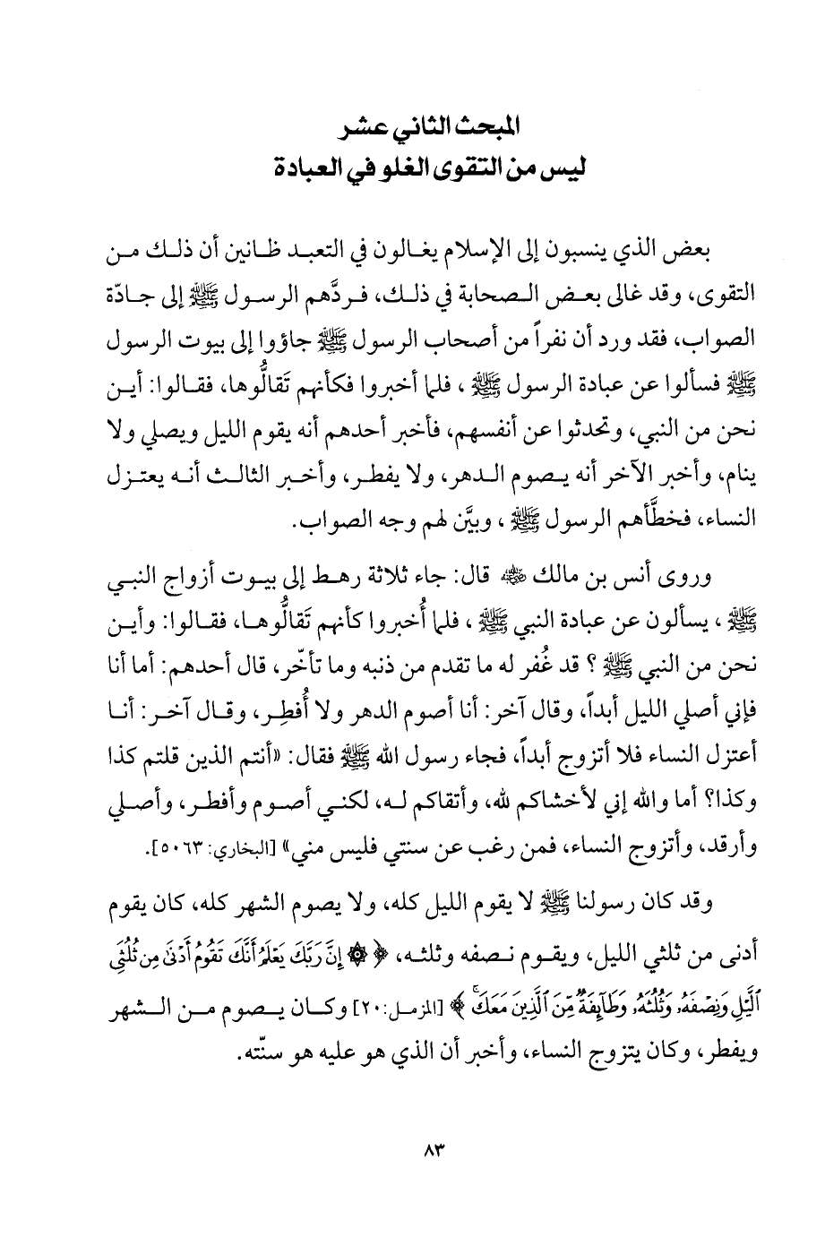 المبحث الثاني عشر ليس من التقوى الغلو في العبادة