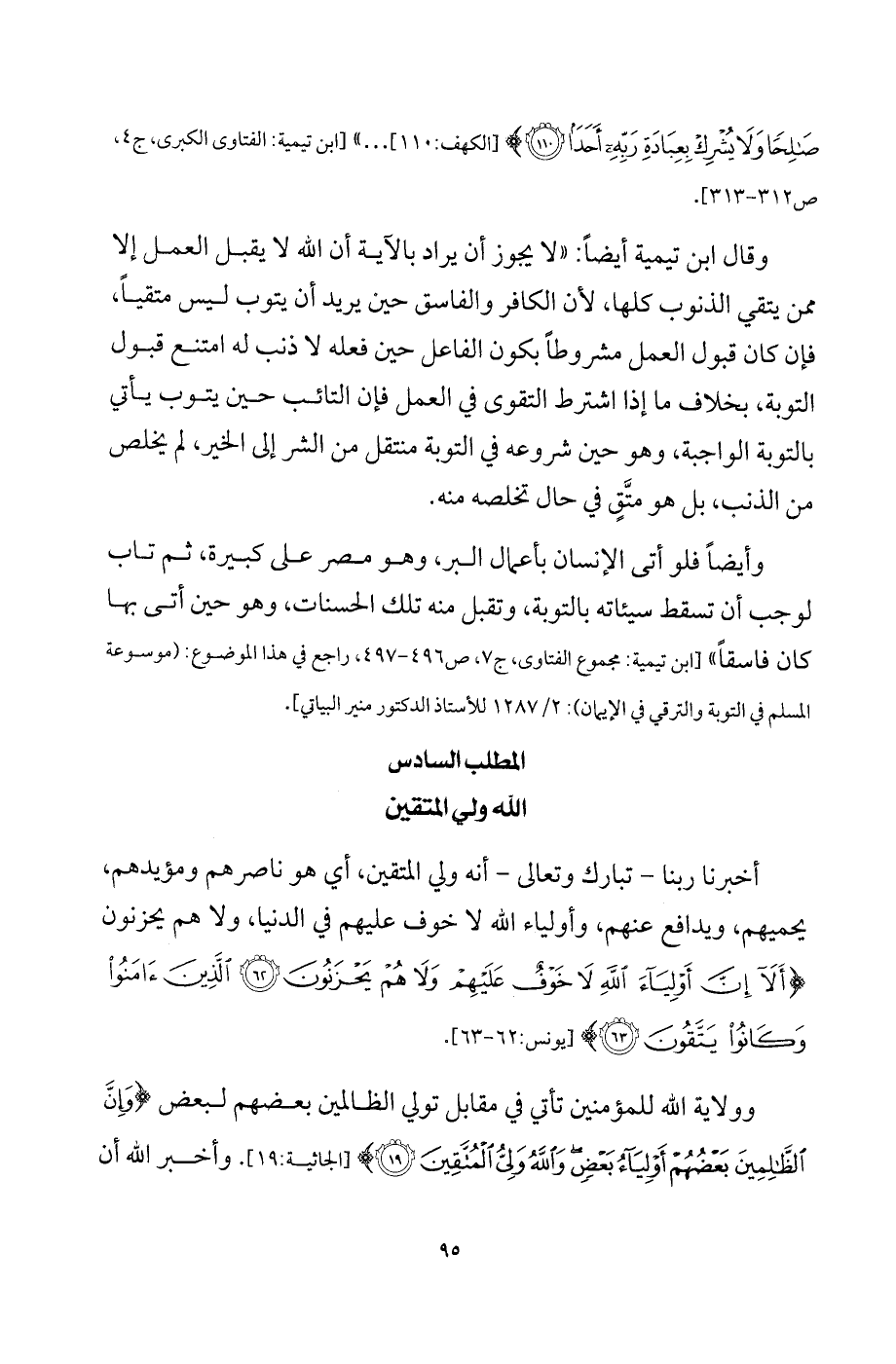 وَلا يُشْرِكْ بِعِبَادَةِ رَبِّهِ أَحَدَا} [الكهف: 110] ... " [ابن تيمية: الفتاوى الكبرى، ج4، ص 312 - 313].