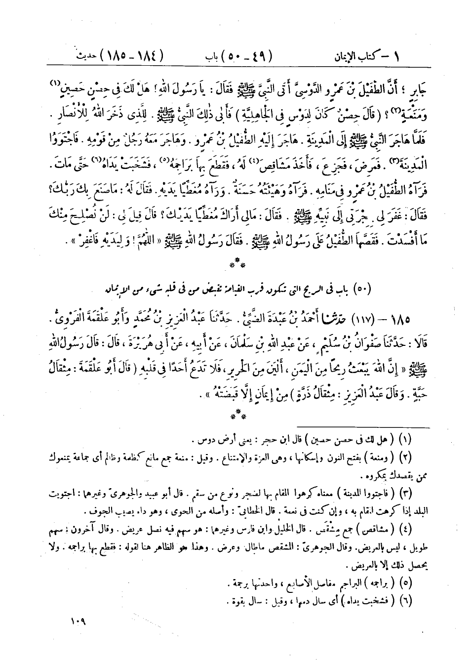 185 - (117) حَدَّثَنَا أَحْمَدُ بْنُ عَبْدَةَ الضَّبِّيُّ، حَدَّثَنَا عَبْدُ الْعَزِيزِ بْنُ مُحَمَّدٍ، وَأَبُو عَلْقَمَةَ الْفَرْوِيُّ، قَالَا: حَدَّثَنَا صَفْوَانُ بْنُ سُلَيْمٍ، عَنْ عَبْدِ اللهِ بْنِ سَلْمَانَ، عَنْ أَبِيهِ، عَنْ أَبِي هُرَيْرَةَ، قَالَ: قَالَ رَسُولُ اللهِ صَلَّى اللهُ عَلَيْهِ وَسَلَّمَ: " إِنَّ §اللهَ يَبْعَثُ رِيحًا مِنَ الْيَمَنِ أَلْيَنَ مِنَ الْحَرِيرِ، فَلَا تَدَعُ أَحَدًا فِي قَلْبِهِ - قَالَ أَبُو عَلْقَمَةَ مِثْقَالُ حَبَّةٍ، وَقَالَ عَبْدُ الْعَزِيزِ: مِثْقَالُ ذَرَّةٍ - مِنْ إِيمَانٍ إِلَّا قَبَضَتْهُ "