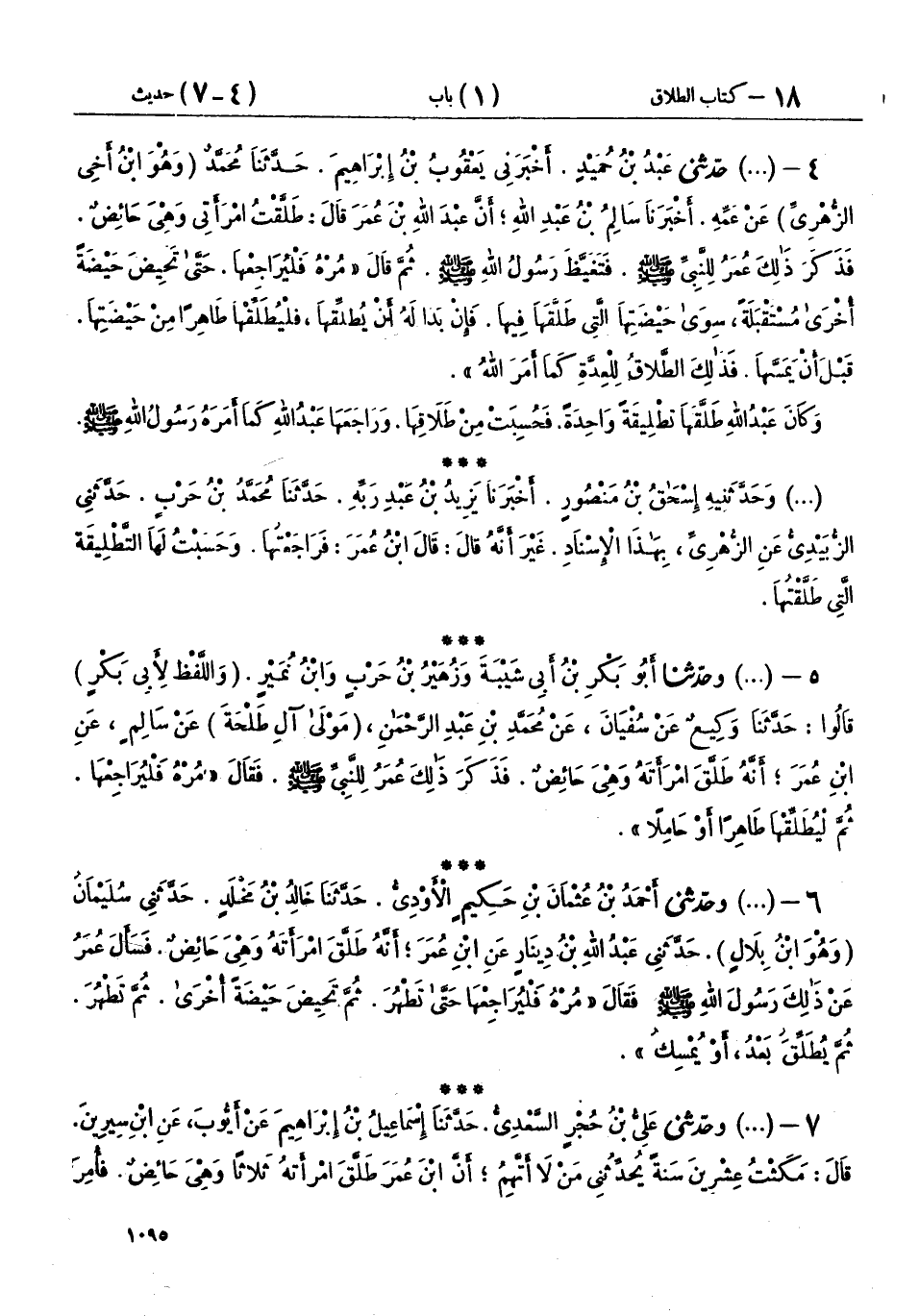 (1471) وحَدَّثَنِيهِ إِسْحَاقُ بْنُ مَنْصُورٍ، أَخْبَرَنَا يَزِيدُ بْنُ عَبْدِ رَبِّهِ، حَدَّثَنَا مُحَمَّدُ بْنُ حَرْبٍ، حَدَّثَنِي الزُّبَيْدِيُّ، عَنِ الزُّهْرِيِّ، بِهَذَا الْإِسْنَادِ، غَيْرَ أَنَّهُ قَالَ: قَالَ ابْنُ عُمَرَ: فَرَاجَعْتُهَا، وَحَسَبْتُ لَهَا التَّطْلِيقَةَ الَّتِي طَلَّقْتُهَا