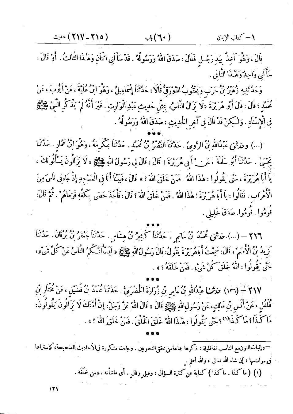 216 - (135) حَدَّثَنِي مُحَمَّدُ بْنُ حَاتِمٍ، حَدَّثَنَا كَثِيرُ بْنُ هِشَامٍ، حَدَّثَنَا جَعْفَرُ بْنُ بُرْقَانَ، حَدَّثَنَا يَزِيدُ بْنُ الْأَصَمِّ، قَالَ: سَمِعْتُ أَبَا هُرَيْرَةَ، يَقُولُ: قَالَ رَسُولُ اللهِ صَلَّى اللهُ عَلَيْهِ وَسَلَّمَ: " §لَيَسْأَلَنَّكُمُ النَّاسُ عَنْ كُلِّ شَيْءٍ حَتَّى يَقُولُوا: اللهُ خَلَقَ كُلَّ شَيْءٍ، فَمَنْ خَلَقَهُ؟ "
