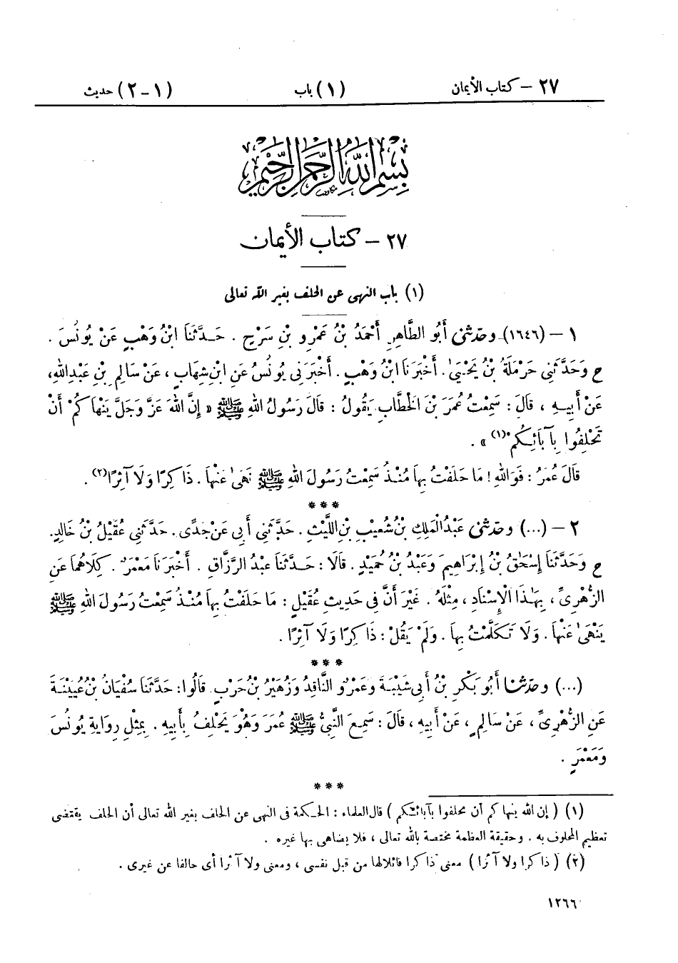 1 - بَابُ النَّهْيِ عَنِ الْحَلِفِ بِغَيْرِ اللهِ تَعَالَى