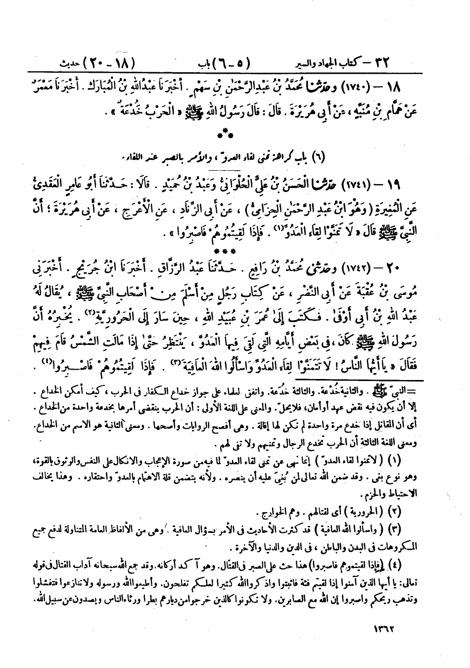 18 - (1740) وحَدَّثَنَا مُحَمَّدُ بْنُ عَبْدِ الرَّحْمَنِ بْنِ سَهْمٍ، أَخْبَرَنَا عَبْدُ اللهِ بْنُ الْمُبَارَكِ، أَخْبَرَنَا مَعْمَرٌ، عَنْ هَمَّامِ بْنِ مُنَبِّهٍ، عَنْ أَبِي هُرَيْرَةَ، قَالَ: قَالَ رَسُولُ اللهِ صَلَّى اللهُ عَلَيْهِ وَسَلَّمَ: «§الْحَرْبُ خَدْعَةٌ»