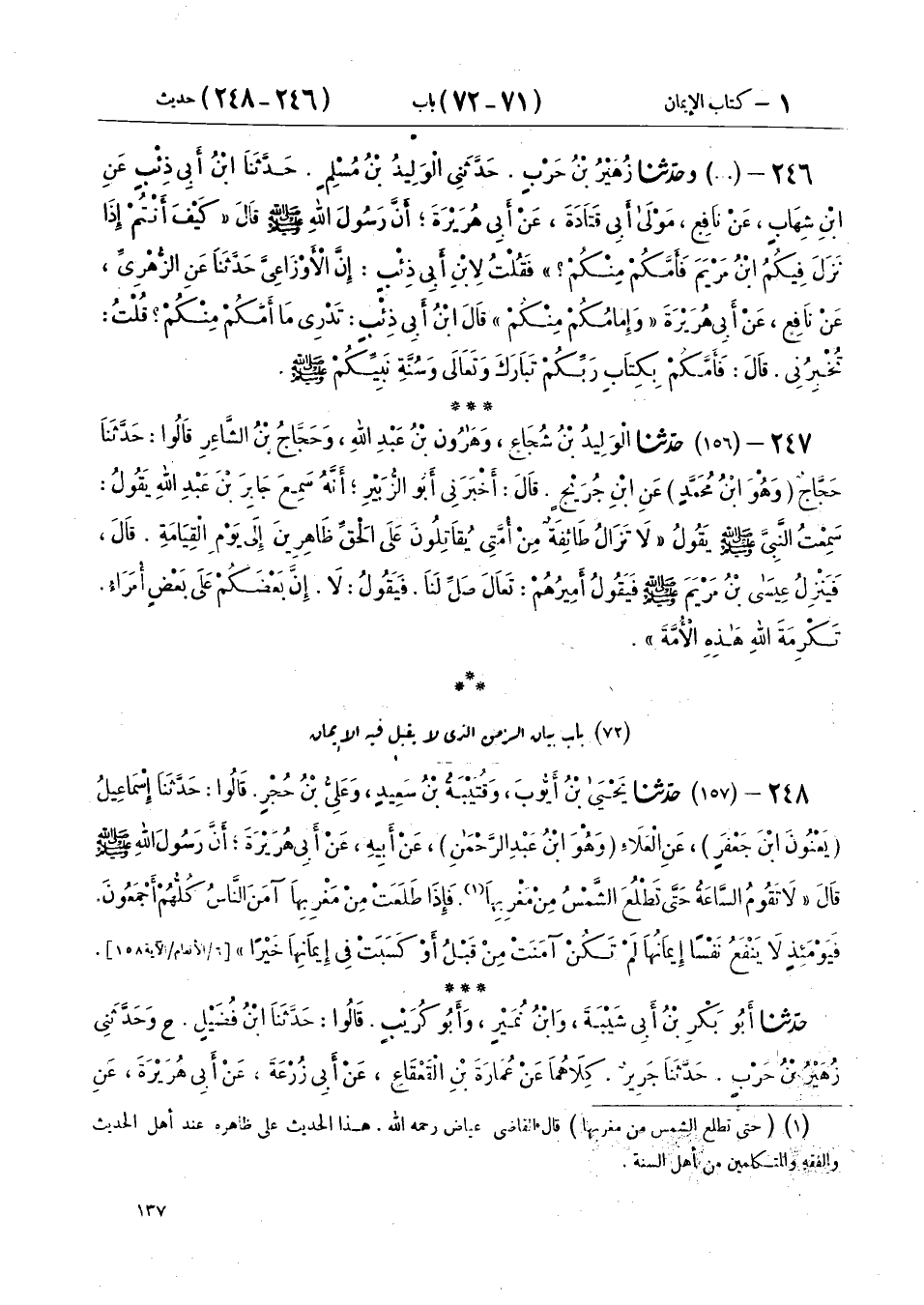 72 - بَابُ بَيَانِ الزَّمَنِ الَّذِي لَا يُقْبَلُ فِيهِ الْإِيمَانُ