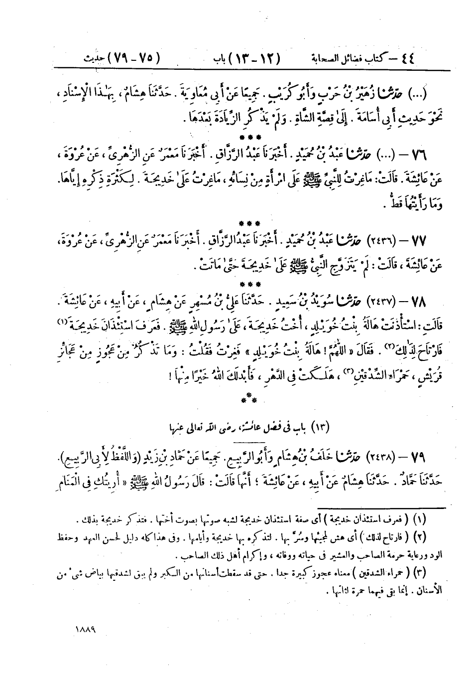 75 - حَدَّثَنَا زُهَيْرُ بْنُ حَرْبٍ، وَأَبُو كُرَيْبٍ، جَمِيعًا، عَنْ أَبِي مُعَاوِيَةَ، حَدَّثَنَا هِشَامٌ، بِهَذَا الْإِسْنَادِ نَحْوَ حَدِيثِ أَبِي أُسَامَةَ إِلَى قِصَّةِ الشَّاةِ وَلَمْ يَذْكُرِ الزِّيَادَةَ بَعْدَهَا