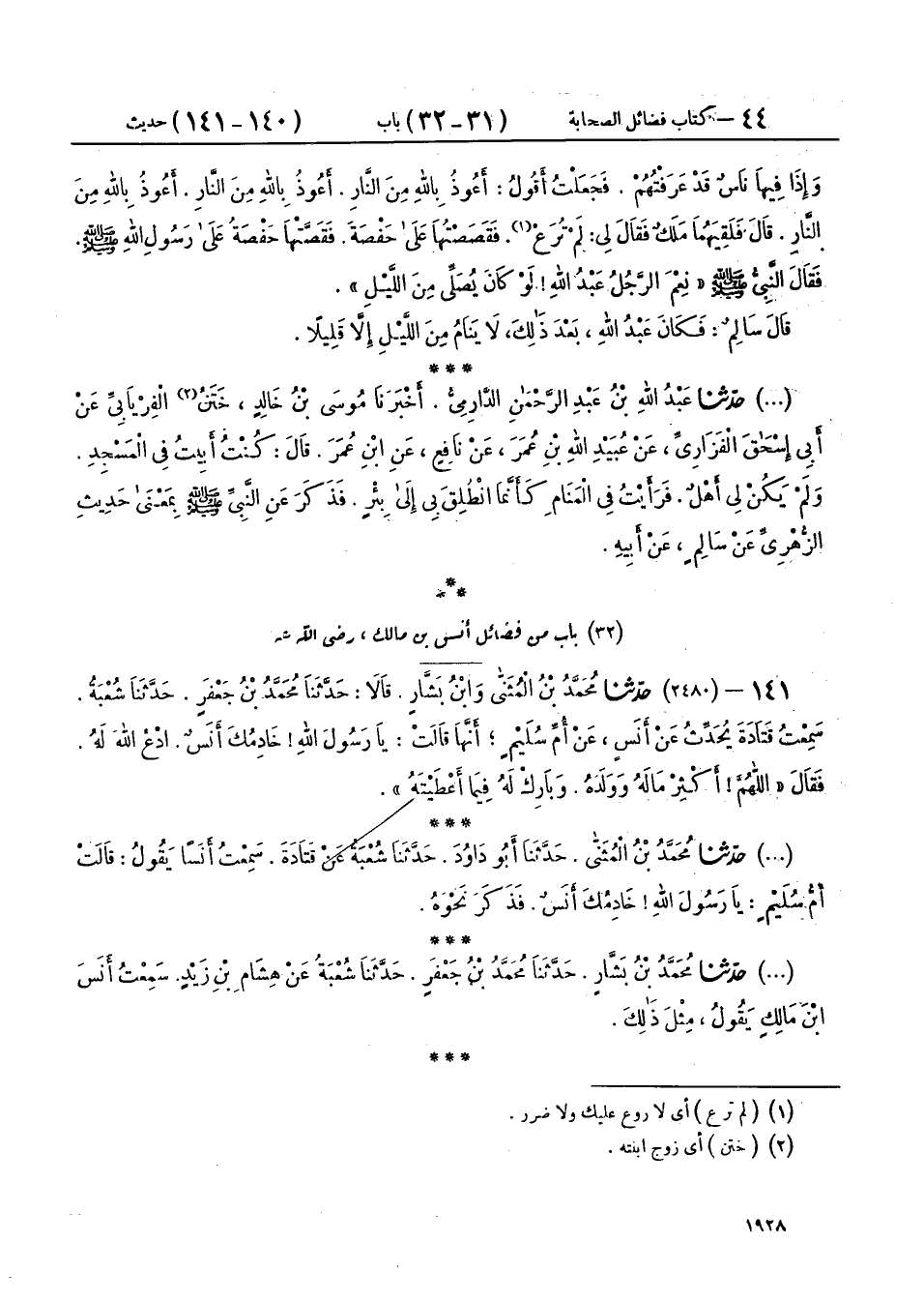 141 - حَدَّثَنَا مُحَمَّدُ بْنُ الْمُثَنَّى، حَدَّثَنَا أَبُو دَاوُدَ، حَدَّثَنَا شُعْبَةُ، عَنْ قَتَادَةَ، سَمِعْتُ أَنَسًا يَقُولُ: قَالَتْ أُمُّ سُلَيْمٍ: يَا رَسُولَ اللهِ خَادِمُكَ أَنَسٌ، فَذَكَرَ نَحْوَهُ.