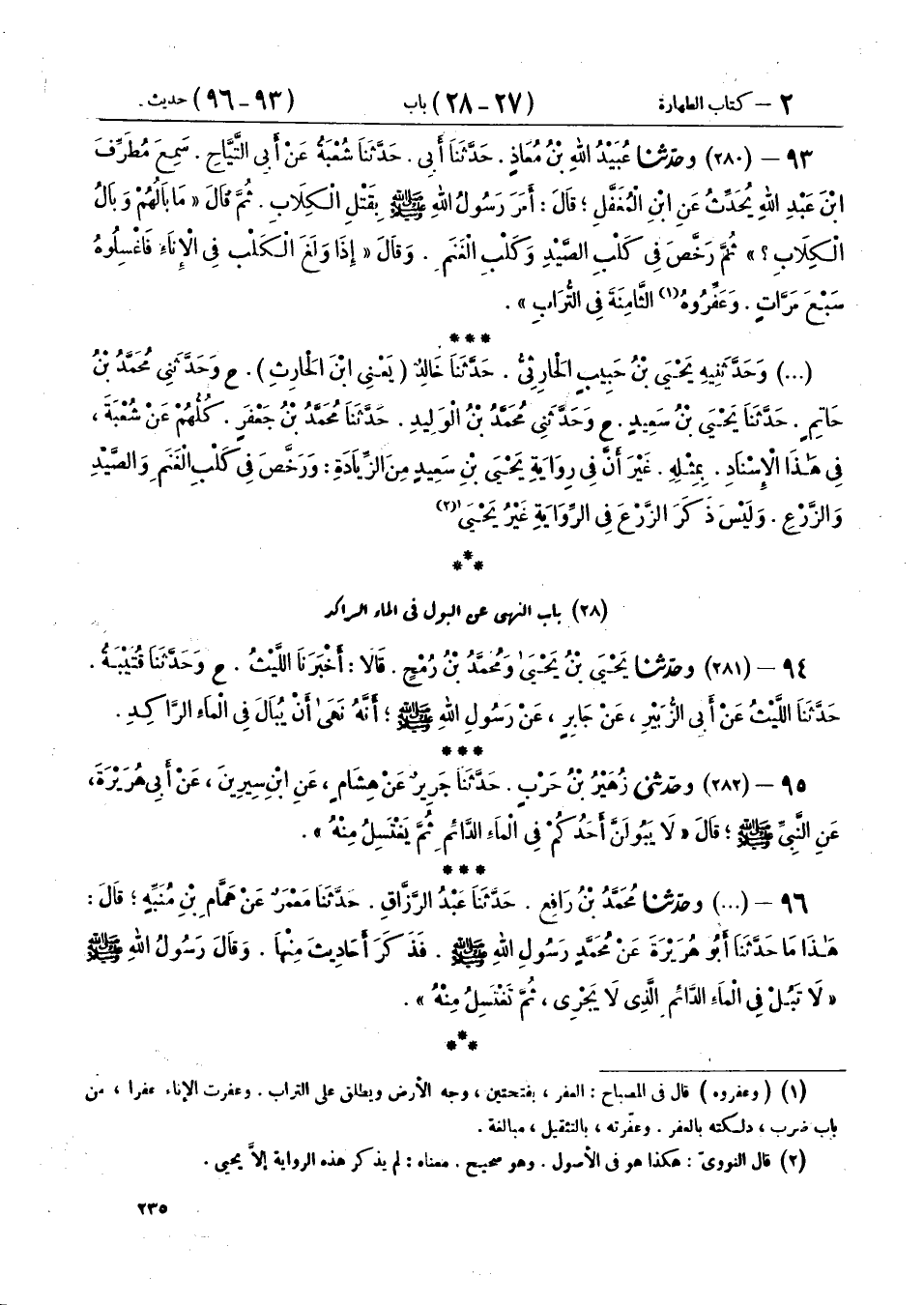 28 - بَابُ النَّهْيِ عَنِ البوْلِ فِي المَاءِ الرَّاكدِ