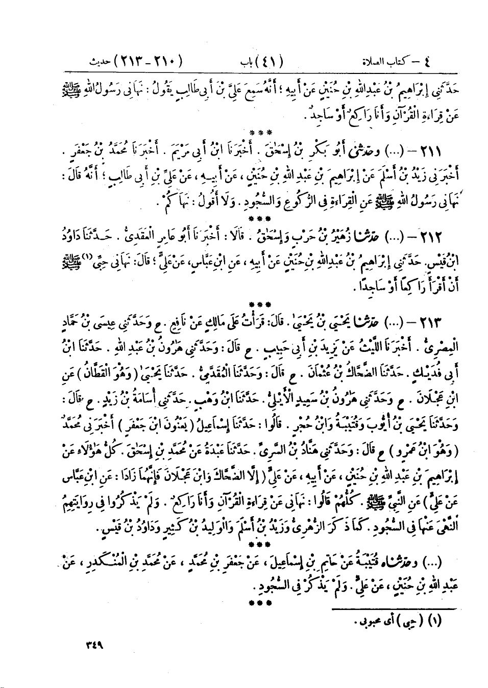 212 - (480) حَدَّثَنَا زُهَيْرُ بْنُ حَرْبٍ، وَإِسْحَاقُ، قَالَا: أَخْبَرَنَا أَبُو عَامِرٍ الْعَقَدِيُّ، حَدَّثَنَا دَاوُدُ بْنُ قَيْسٍ، حَدَّثَنِي إِبْرَاهِيمُ بْنُ عَبْدِ اللهِ بْنِ حُنَيْنٍ، عَنْ أَبِيهِ، عَنِ ابْنِ عَبَّاسٍ، عَنْ عَلِيٍّ، قَالَ: «§نَهَانِي حِبِّي صَلَّى اللهُ عَلَيْهِ وَسَلَّمَ، أَنْ أَقْرَأَ رَاكِعًا أَوْ سَاجِدًا»