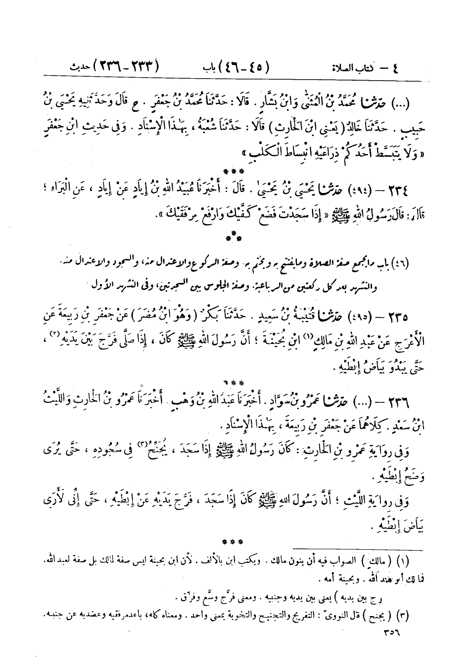 235 - (495) حَدَّثَنَا قُتَيْبَةُ بْنُ سَعِيدٍ، حَدَّثَنَا بَكْرٌ وَهُوَ ابْنُ مُضَرَ، عَنْ جَعْفَرِ بْنِ رَبِيعَةَ، عَنِ الْأَعْرَجِ، عَنْ عَبْدِ اللهِ بْنِ مَالِكٍ ابْنِ بُحَيْنَةَ: «أَنَّ رَسُولَ اللهِ صَلَّى اللهُ عَلَيْهِ وَسَلَّمَ كَانَ §إِذَا صَلَّى فَرَّجَ بَيْنَ يَدَيْهِ، حَتَّى يَبْدُوَ بَيَاضُ إِبْطَيْهِ»