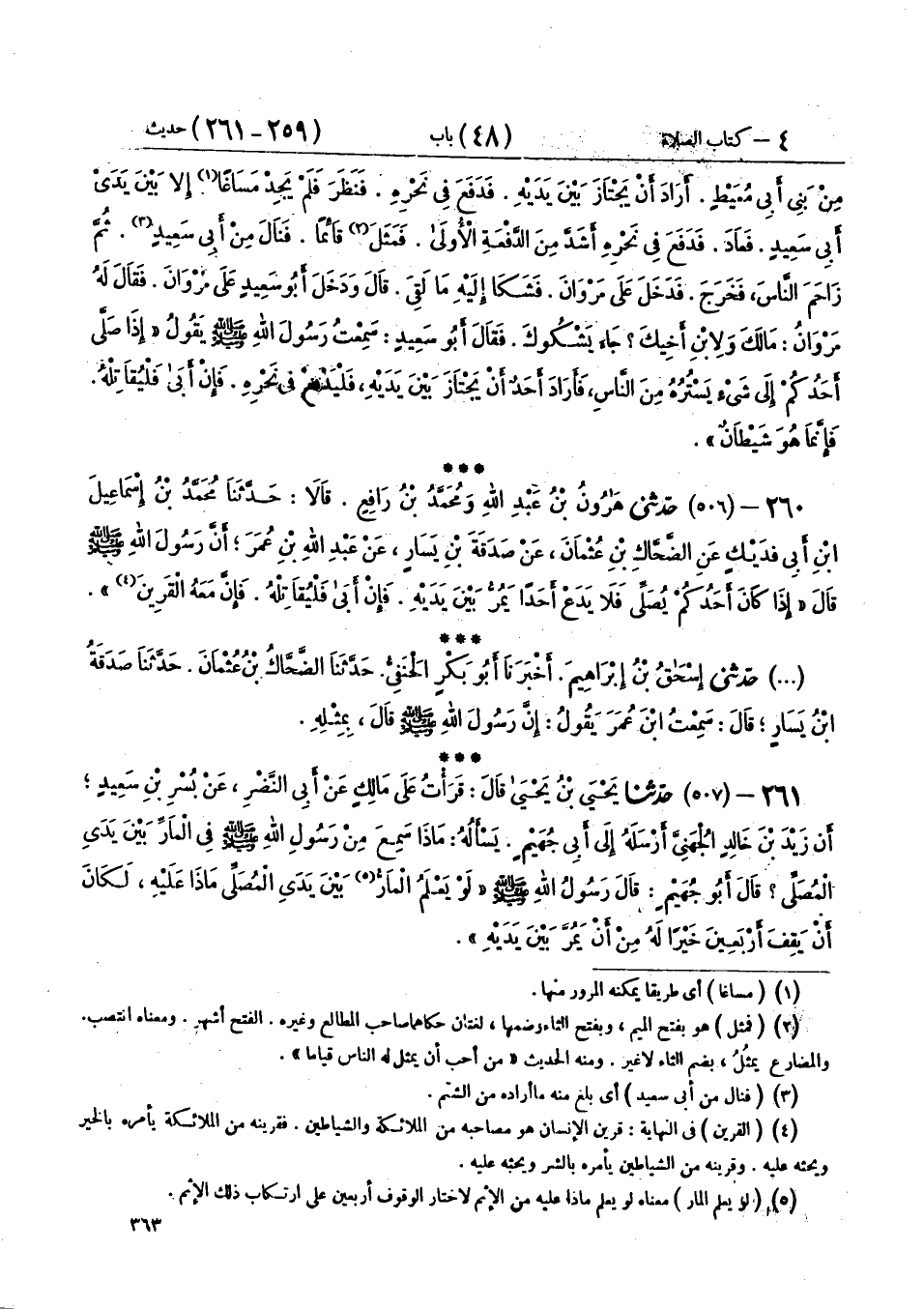 S [ ش (لو يعلم المار) معناه لو يعلم ماذا عليه من الإثم لاختار الوقوف أربعين على ارتكاب ذلك الإثم]