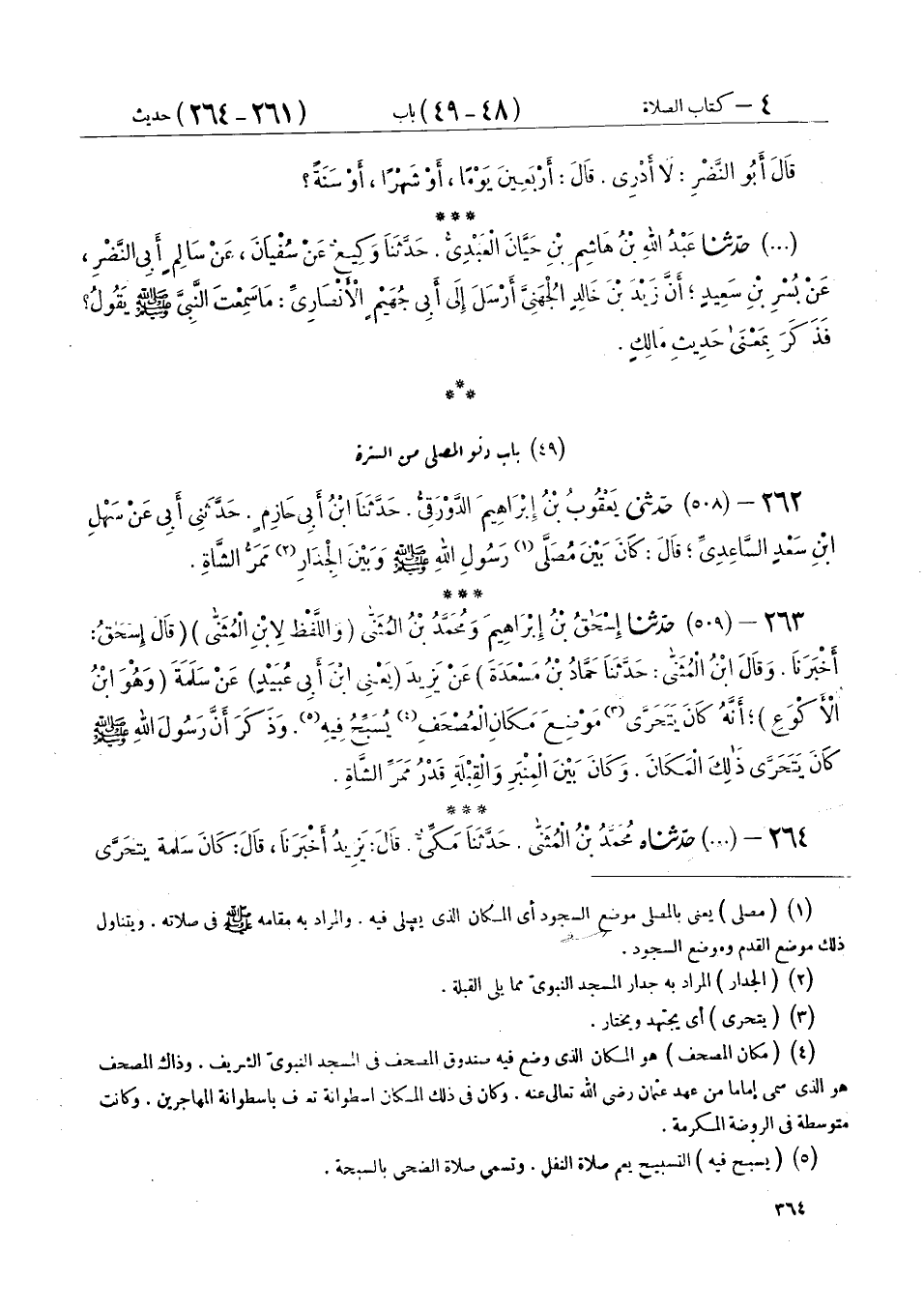 264 - (509) حَدَّثَنَاهُ مُحَمَّدُ بْنُ الْمُثَنَّى، حَدَّثَنَا مَكِّيٌّ، قَالَ يَزِيدُ: أَخْبَرَنَا، قَالَ: كَانَ سَلَمَةُ يَتَحَرَّى الصَّلَاةَ عِنْدَ الْأُسْطُوَانَةِ الَّتِي عِنْدَ الْمُصْحَفِ. فَقُلْتُ لَهُ: يَا أَبَا مُسْلِمٍ أَرَاكَ تَتَحَرَّى الصَّلَاةَ عِنْدَ هَذِهِ الْأُسْطُوَانَةِ، قَالَ: «رَأَيْتُ النَّبِيَّ صَلَّى اللهُ عَلَيْهِ وَسَلَّمَ §يَتَحَرَّى الصَّلَاةَ عِنْدَهَا»