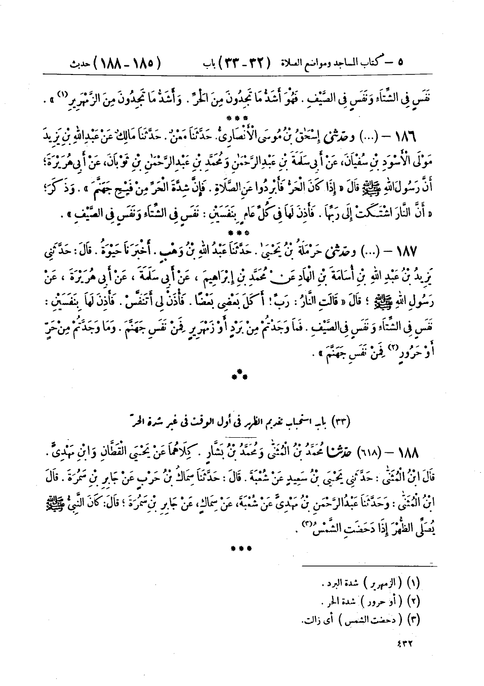 33 - بَابُ اسْتِحْبَابِ تَقْدِيمِ الظُّهْرِ فِي أَوَّلِ الْوَقْتِ فِي غَيْرِ شِدَّةِ الْحَرِّ