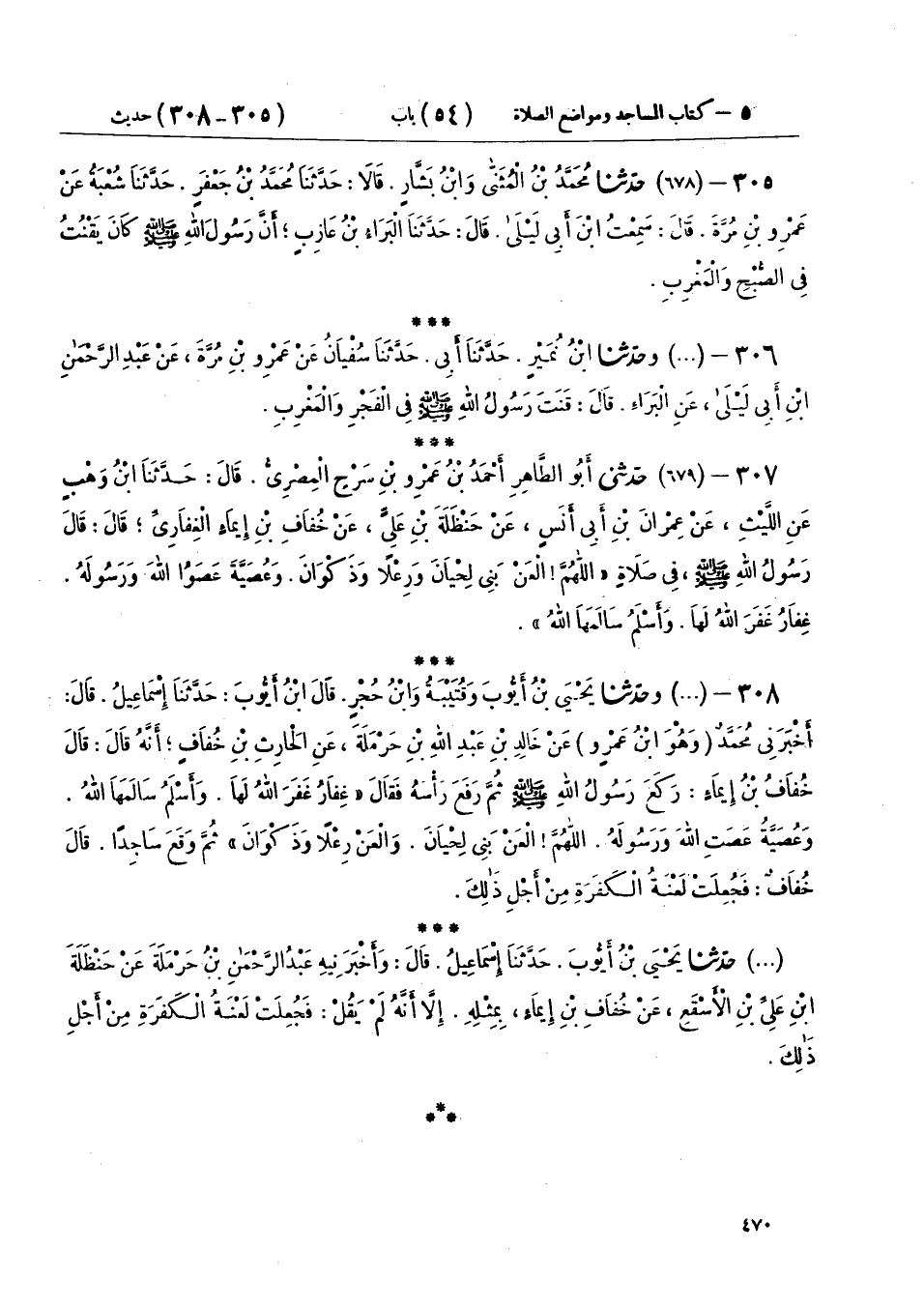 305 - (678) حَدَّثَنَا مُحَمَّدُ بْنُ الْمُثَنَّى، وَابْنُ بَشَّارٍ، قَالَا: حَدَّثَنَا مُحَمَّدُ بْنُ جَعْفَرٍ، حَدَّثَنَا شُعْبَةُ، عَنْ عَمْرِو بْنِ مُرَّةَ، قَالَ: سَمِعْتُ ابْنَ أَبِي لَيْلَى، قَالَ: حَدَّثَنَا الْبَرَاءُ بْنُ عَازِبٍ: «أَنَّ رَسُولَ اللهِ صَلَّى اللهُ عَلَيْهِ وَسَلَّمَ كَانَ §يَقْنُتُ فِي الصُّبْحِ، وَالْمَغْرِبِ»