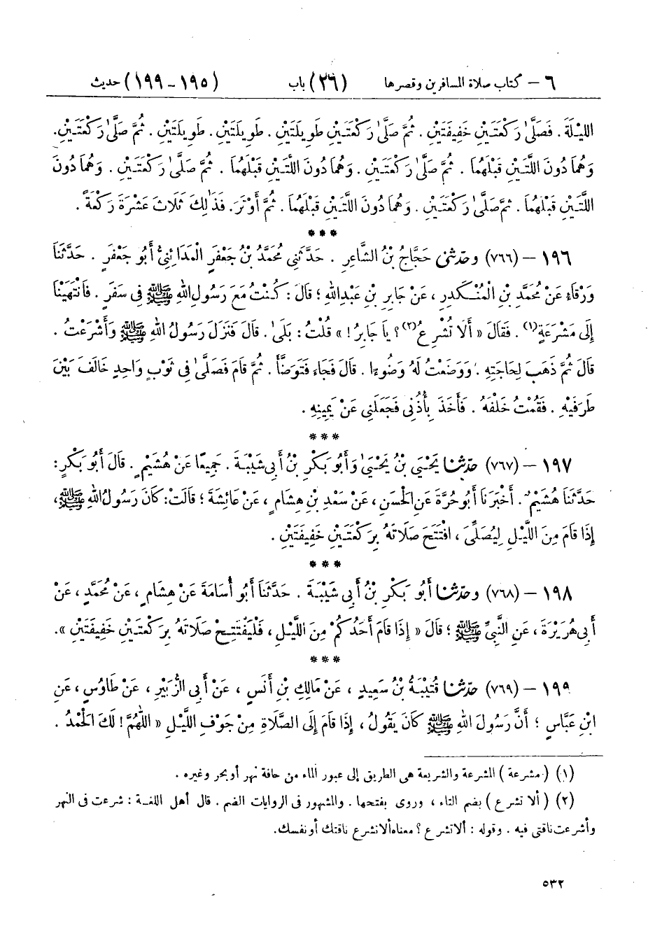 197 - (767) حَدَّثَنَا يَحْيَى بْنُ يَحْيَى، وَأَبُو بَكْرِ بْنُ أَبِي شَيْبَةَ، جَمِيعًا عَنْ هُشَيْمٍ، قَالَ أَبُو بَكْرٍ: حَدَّثَنَا هُشَيْمٌ، أَخْبَرَنَا أَبُو حُرَّةَ، عَنِ الْحَسَنِ، عَنْ سَعْدِ بْنِ هِشَامٍ، عَنْ عَائِشَةَ، قَالَتْ: «كَانَ رَسُولُ اللهِ صَلَّى اللهُ عَلَيْهِ وَسَلَّمَ §إِذَا قَامَ مِنَ اللَّيْلِ لِيُصَلِّيَ، افْتَتَحَ صَلَاتَهُ بِرَكْعَتَيْنِ خَفِيفَتَيْنِ»
