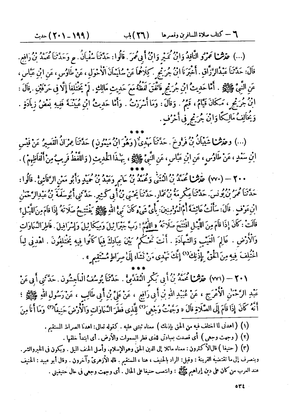 200 - (770) حَدَّثَنَا مُحَمَّدُ بْنُ الْمُثَنَّى، وَمُحَمَّدُ بْنُ حَاتِمٍ، وَعَبْدُ بْنُ حُمَيْدٍ، وَأَبُو مَعْنٍ الرَّقَاشِيُّ، قَالُوا: حَدَّثَنَا عُمَرُ بْنُ يُونُسَ، حَدَّثَنَا عِكْرِمَةُ بْنُ عَمَّارٍ، حَدَّثَنَا يَحْيَى بْنُ أَبِي كَثِيرٍ، حَدَّثَنِي أَبُو سَلَمَةَ بْنُ عَبْدِ الرَّحْمَنِ بْنِ عَوْفٍ، قَالَ: سَأَلْتُ عَائِشَةَ أُمَّ الْمُؤْمِنِينَ، بِأَيِّ شَيْءٍ كَانَ نَبِيُّ اللهِ صَلَّى اللهُ عَلَيْهِ وَسَلَّمَ يَفْتَتِحُ صَلَاتَهُ إِذَا قَامَ مِنَ اللَّيْلِ؟ قَالَتْ: كَانَ إِذَا قَامَ مِنَ اللَّيْلِ افْتَتَحَ صَلَاتَهُ: «§اللهُمَّ رَبَّ جَبْرَائِيلَ، وَمِيكَائِيلَ، وَإِسْرَافِيلَ، فَاطِرَ السَّمَاوَاتِ وَالْأَرْضِ، عَالِمَ الْغَيْبِ وَالشَّهَادَةِ، أَنْتَ تَحْكُمُ بَيْنَ عِبَادِكَ فِيمَا كَانُوا فِيهِ يَخْتَلِفُونَ، اهْدِنِي لِمَا اخْتُلِفَ فِيهِ مِنَ الْحَقِّ بِإِذْنِكَ، إِنَّكَ تَهْدِي مَنْ تَشَاءُ إِلَى صِرَاطٍ مُسْتَقِيمٍ»