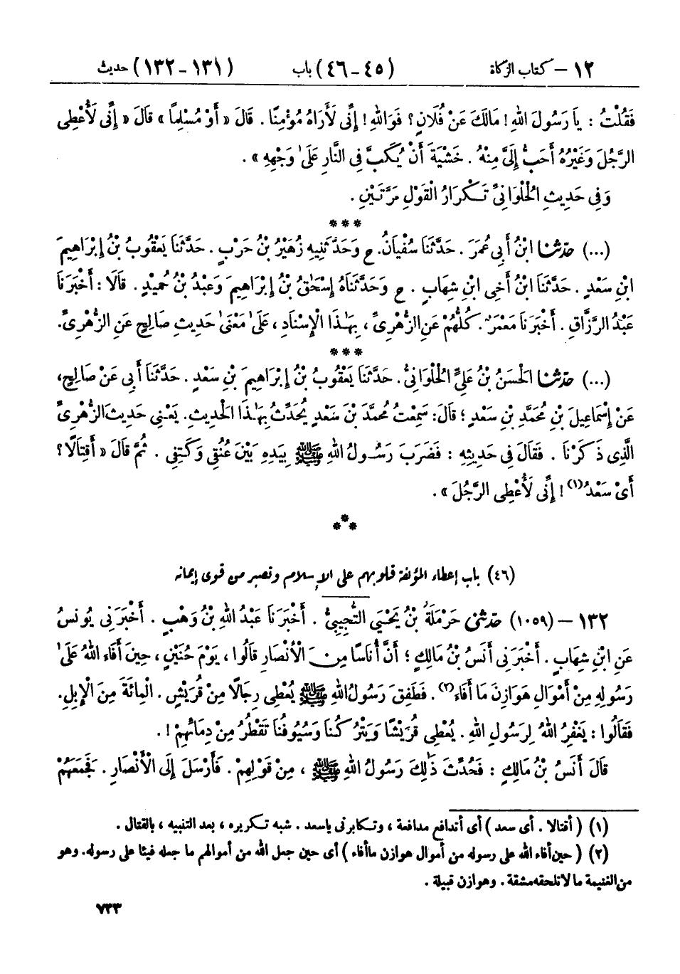 46 - بَابُ إِعْطَاءِ الْمُؤَلَّفَةِ قُلُوبُهُمْ عَلَى الْإِسْلَامِ وَتَصَبُّرِ مَنْ قَوِيَ إِيمَانُهُ