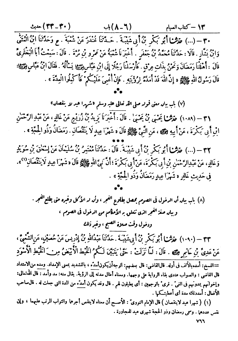 7 - بَابُ بَيَانِ مَعْنَى قَوْلِهِ صَلَّى اللهُ عَلَيْهِ وَسَلَّمَ «شَهْرَا عِيدٍ لَا يَنْقُصَانِ»