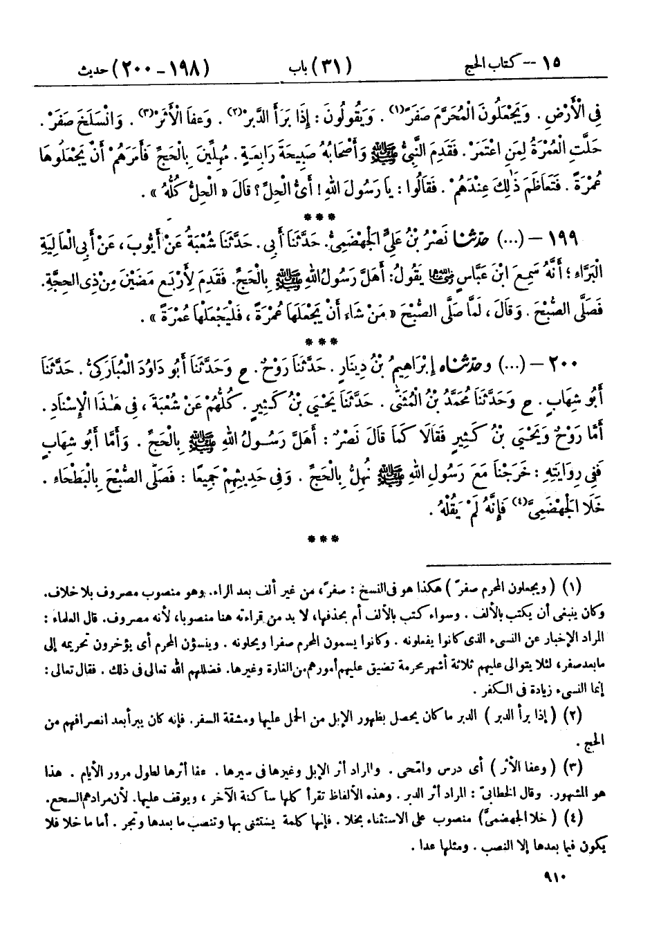 200 - (1240) وحَدَّثَنَاه إِبْرَاهِيمُ بْنُ دِينَارٍ، حَدَّثَنَا رَوْحٌ، ح وحَدَّثَنَا أَبُو دَاوُدَ الْمُبَارَكِيُّ، حَدَّثَنَا أَبُو شِهَابٍ، ح وحَدَّثَنَا مُحَمَّدُ بْنُ الْمُثَنَّى، حَدَّثَنَا يَحْيَى بْنُ كَثِيرٍ، كُلُّهُمْ عَنْ شُعْبَةَ، فِي هَذَا الْإِسْنَادِ أَمَّا رَوْحٌ، وَيَحْيَى بْنُ كَثِيرٍ، فَقَالَا: كَمَا، قَالَ نَصْرٌ: أَهَلَّ رَسُولُ اللهِ صَلَّى اللهُ عَلَيْهِ وَسَلَّمَ بِالْحَجِّ، وَأَمَّا أَبُو شِهَابٍ فَفِي رِوَايَتِهِ: خَرَجْنَا مَعَ رَسُولِ اللهِ صَلَّى اللهُ عَلَيْهِ وَسَلَّمَ نُهِلُّ بِالْحَجِّ، وَفِي حَدِيثِهِمْ جَمِيعًا: فَصَلَّى الصُّبْحَ بِالْبَطْحَاءِ، خَلَا الْجَهْضَمِيَّ فَإِنَّهُ لَمْ يَقُلْهُ