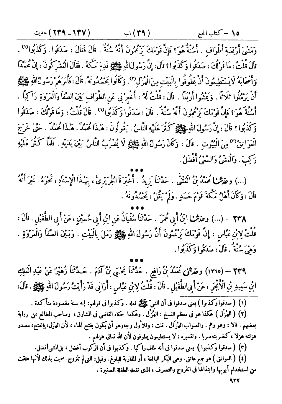 238 - (1264) وحَدَّثَنَا ابْنُ أَبِي عُمَرَ، حَدَّثَنَا سُفْيَانُ، عَنِ ابْنِ أَبِي حُسَيْنٍ، عَنْ أَبِي الطُّفَيْلِ، قَالَ: قُلْتُ لِابْنِ عَبَّاسٍ: «إِنَّ قَوْمَكَ يَزْعُمُونَ أَنَّ رَسُولَ اللهِ صَلَّى اللهُ عَلَيْهِ وَسَلَّمَ §رَمَلَ بِالْبَيْتِ، وَبَيْنَ الصَّفَا وَالْمَرْوَةِ وَهِيَ سُنَّةٌ»، قَالَ: صَدَقُوا وَكَذَبُوا