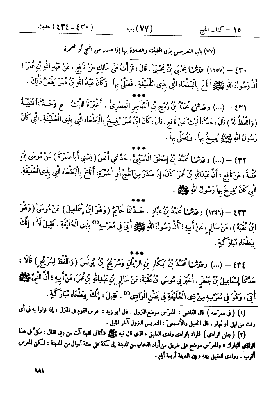 77 - بَابُ التَّعْرِيسِ بِذِي الْحُلَيْفَةِ، وَالصَّلَاةِ بِهَا إِذَا صَدَرَ مِنَ الْحَجِّ أَوِ الْعُمْرَةِ