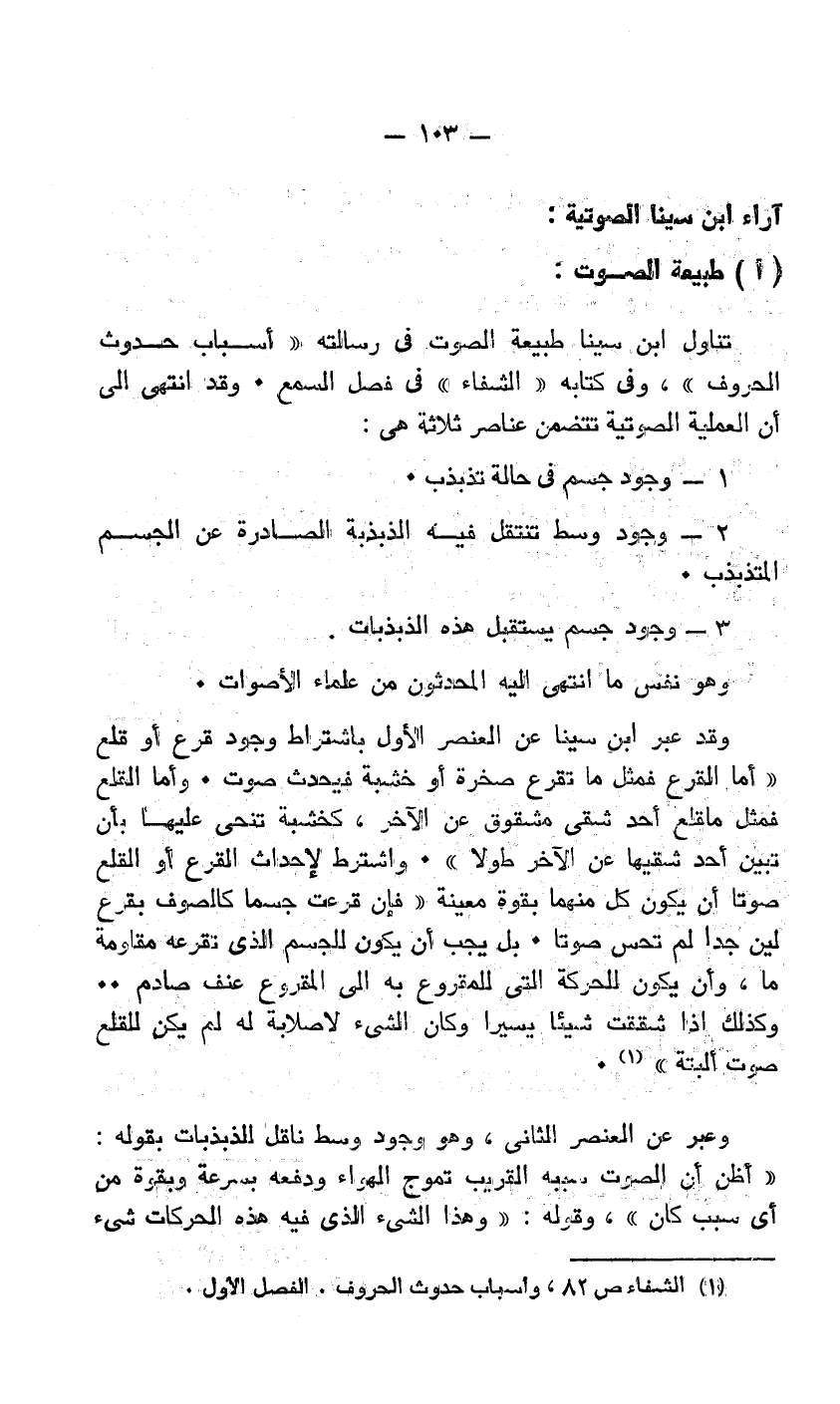 1 الشفاء ص 82. وأسباب حدوث الحروف. الفصل الأول.
