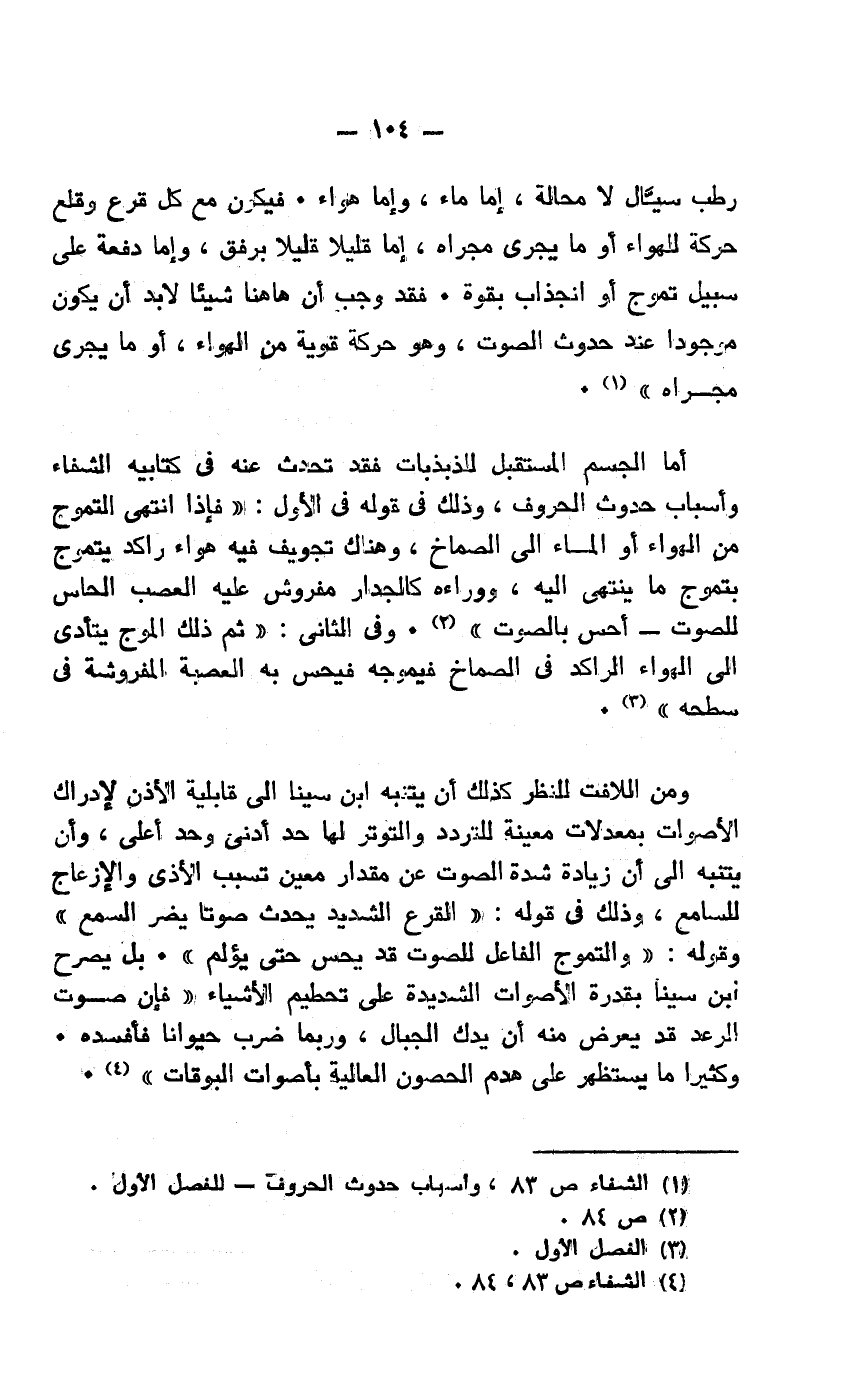 1 الشفاء ص 83، وأسباب حدوث الحروف - الفصل الأول.