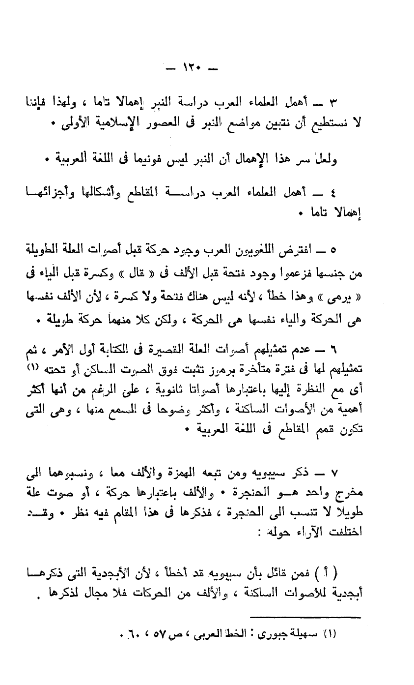 3- أهمل العلماء العرب دراسة النبر إهمالًا تامًّا، ولهذا فإننا لا نستطيع أن نتبين مواضع النبر في العصور الإسلامية الأولى.