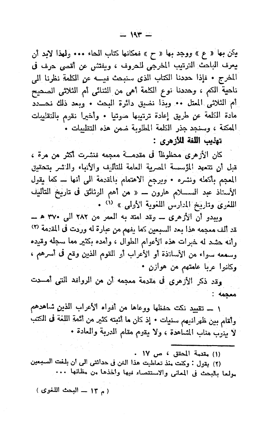 وقد ذكر الأزهري في مقدمة معجمه أن من الروافد التي أمدت معجمه:
