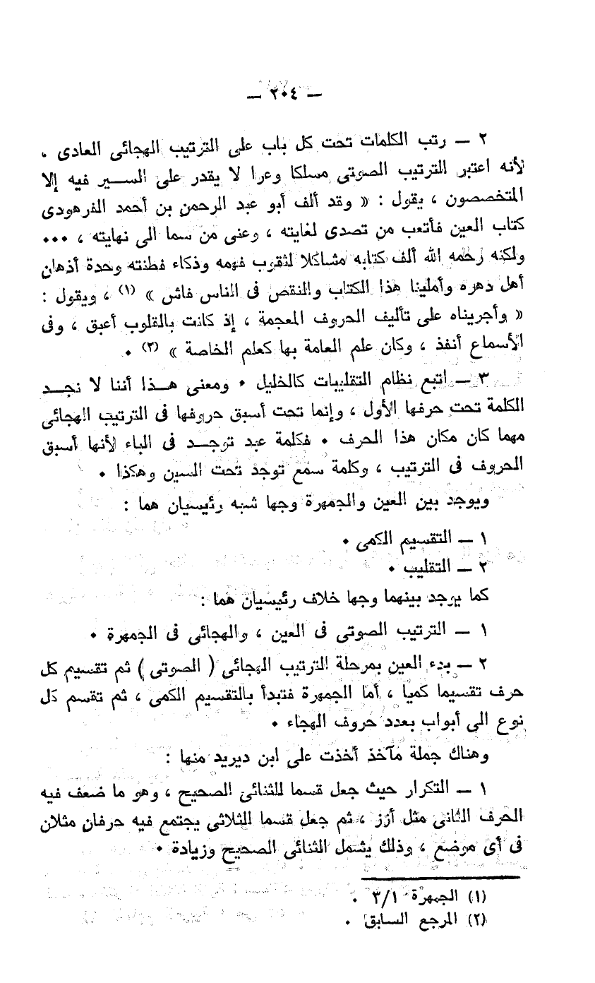 1- الترتيب الصوتي في العين، والهجائي في الجمهرة.