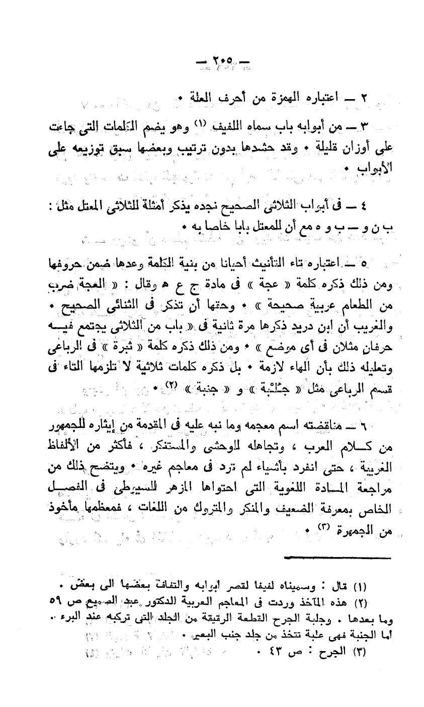 3- من أبوابه باب سماه اللفيف1 وهو يضم الكلمات التي جاءت على أوزان قليلة. وقد حشدها بدون ترتيب وبعضها سبق توزيعه على الأبواب.