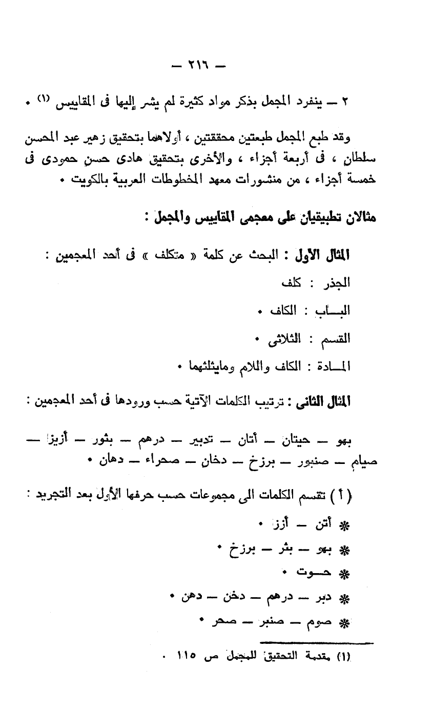 مثالان تطبيقيان على معجمي المقاييس والمجمل: