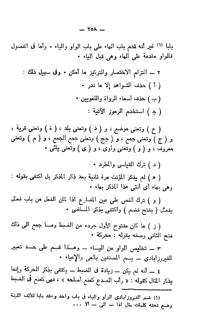 1 ضم الفيروزآبادي الواو والياء في باب واحد وعقد بابًا للألف اللينة وضع تحته كلمات مثل إذا - إلى - ألا....