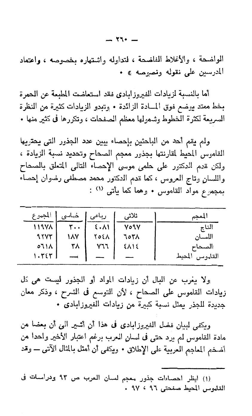 1 انظر احصاءات جذور معجم لسان العرب ص 93 ودراسات في القاموس المحيط صفحتي 96، 97.