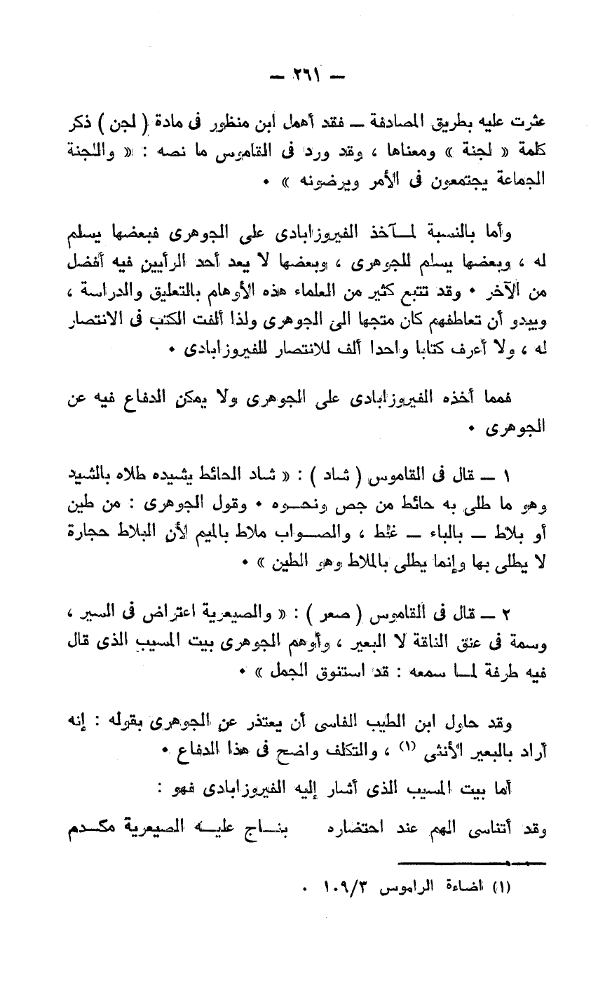 وأما بالنسبة لمآخذ الفيروزآبادي على الجوهري فبعضها يسلم له، وبعضها يسلم للجوهري، وبعضها لا يعد أحد الرأيين فيه أفضل من الآخر. وقد تتبع كثير من العلماء هذه الأوهام بالتعليق والدراسة، ويبدو أن تعاطفهم كان متجهًا إلى الجوهري ولذا ألفت الكتب في الانتصار له، ولا أعرف كتابًا واحدًا ألف للانتصار للفيروزآبادي.
