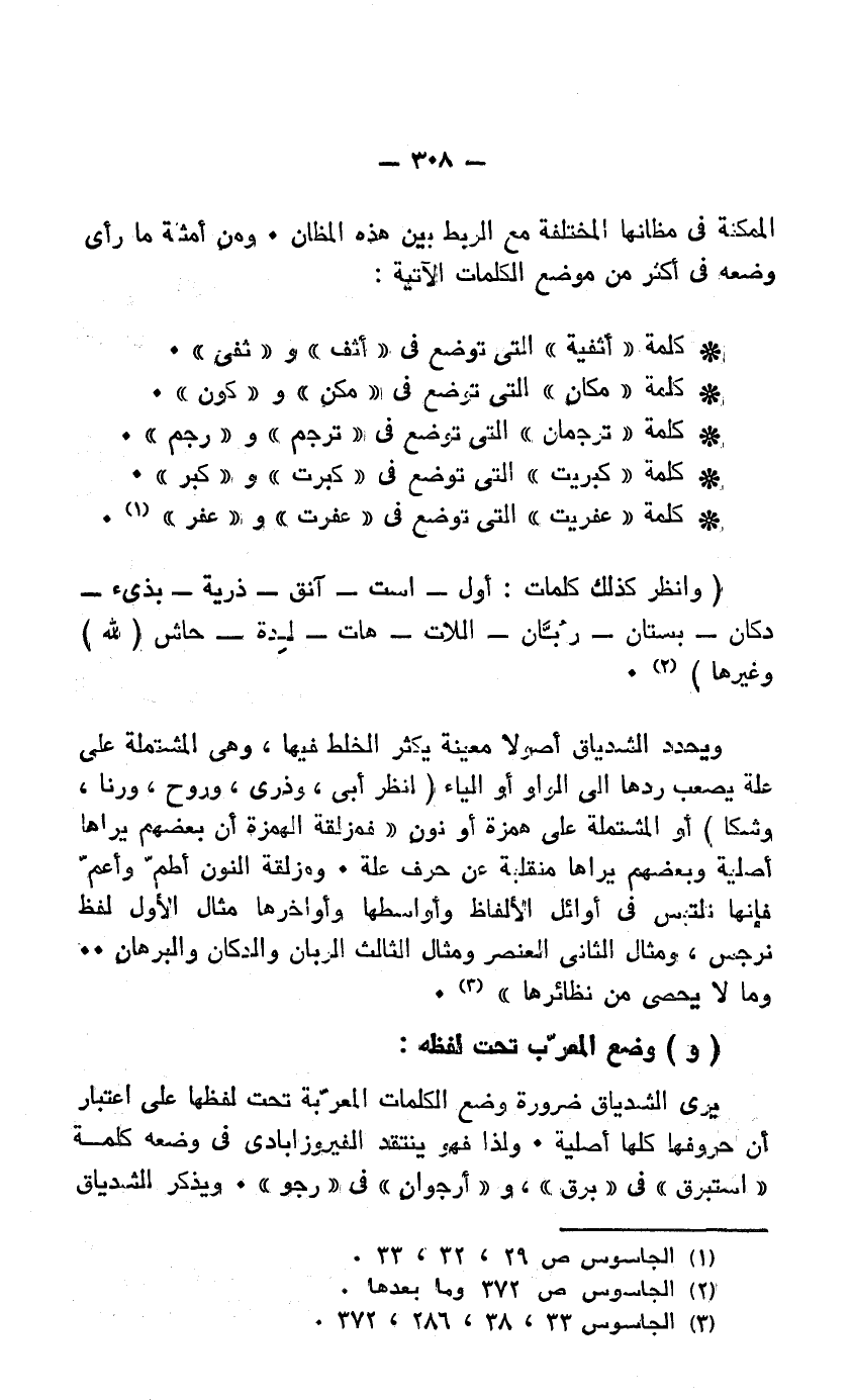 "وانظر كذلك كلمات: أول - است - آنق - ذرية - بذيء - دكان - بستان - ربان - اللات - هات - لدة - حاش "لله" وغيرها"2.