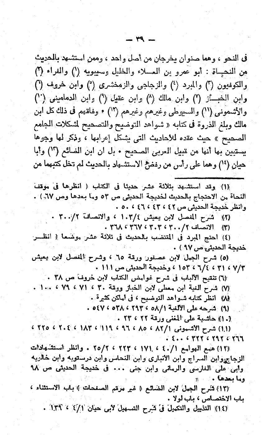 1 وقد استشهد بثلاثة عشر حديثًا في الكتاب "انظرها في موقف النحاة من الاحتجاج بالحديث لخديجة الحديثي ص 53 وما بعدها وص 67".
