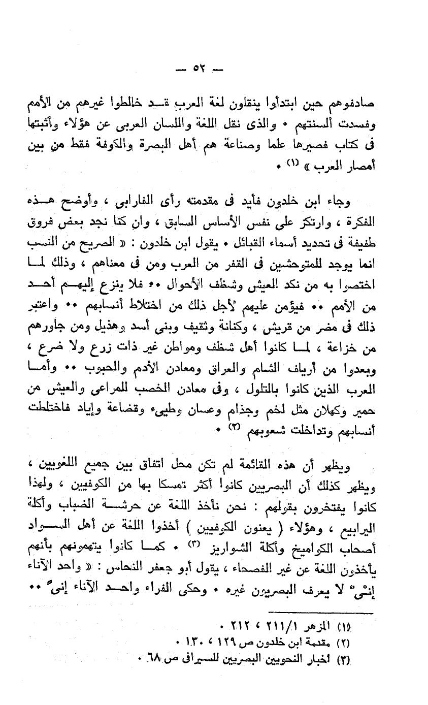 صادفوهم حين ابتدأوا ينقلون لغة العرب قد خالطوا غيرهم من الأمم وفسدت ألسنتهم. والذي نقل اللغة واللسان العربي عن هؤلاء وأثبتها في كتاب فصيرها علمًا وصناعة هم أهل البصرة والكوفة فقط من بين أمصار العرب"1.