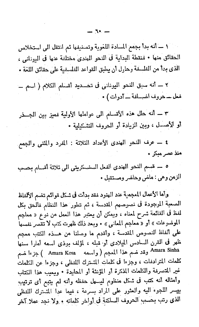1- أنه بدأ بجمع المادة اللغوية وتصنيفها، ثم انتقل إلى استخلاص الحقائق منها. فنقطة البداية في النحو الهندي مختلفة عنها في اليوناني، الذي بدأ من الفلسفة وحاول أن يطبق القواعد الفلسفية على حقائق اللغة.