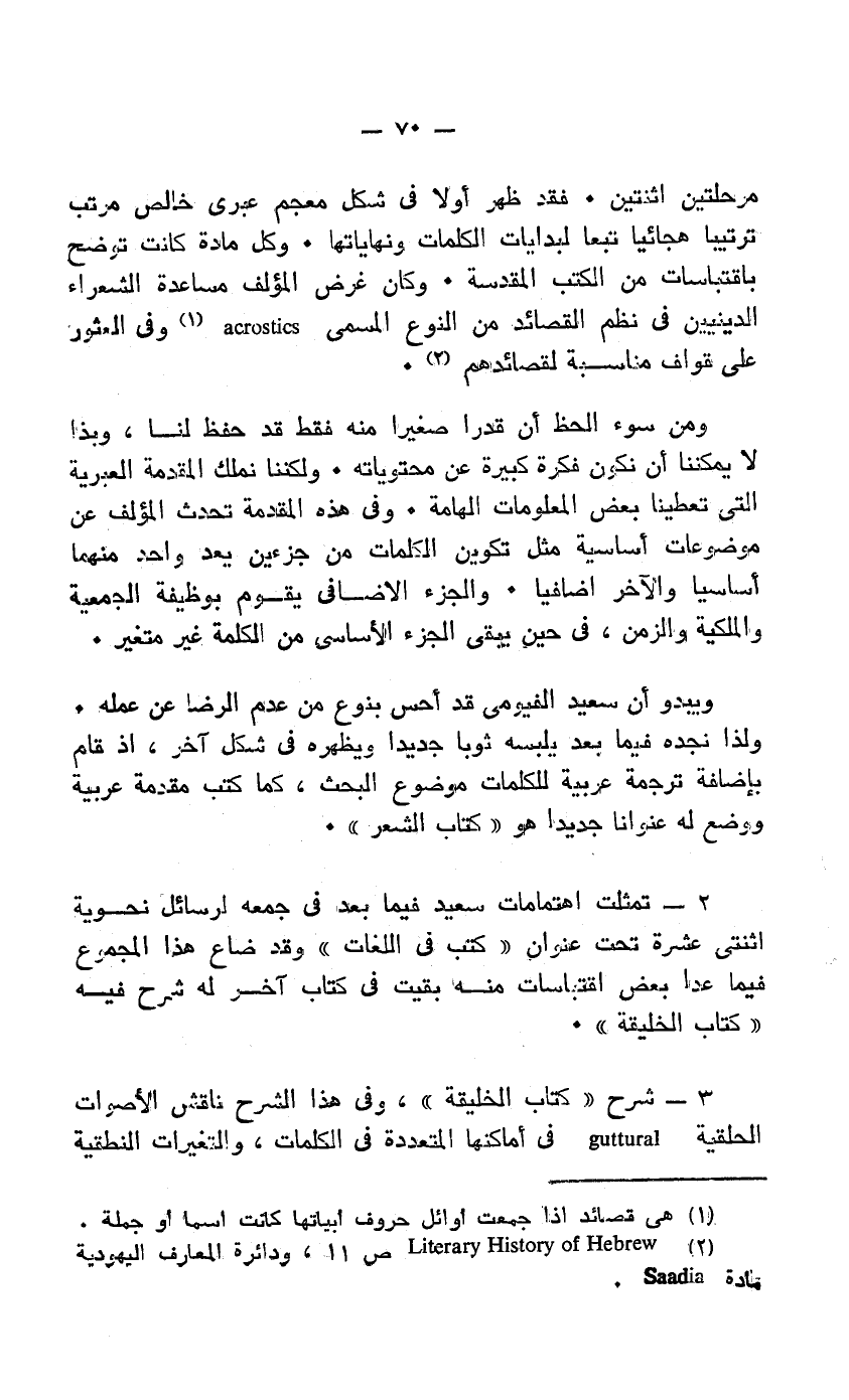 2 Literary History of Hebrew ص 11، ودائرة المعارف اليهودية مادة Saadia.