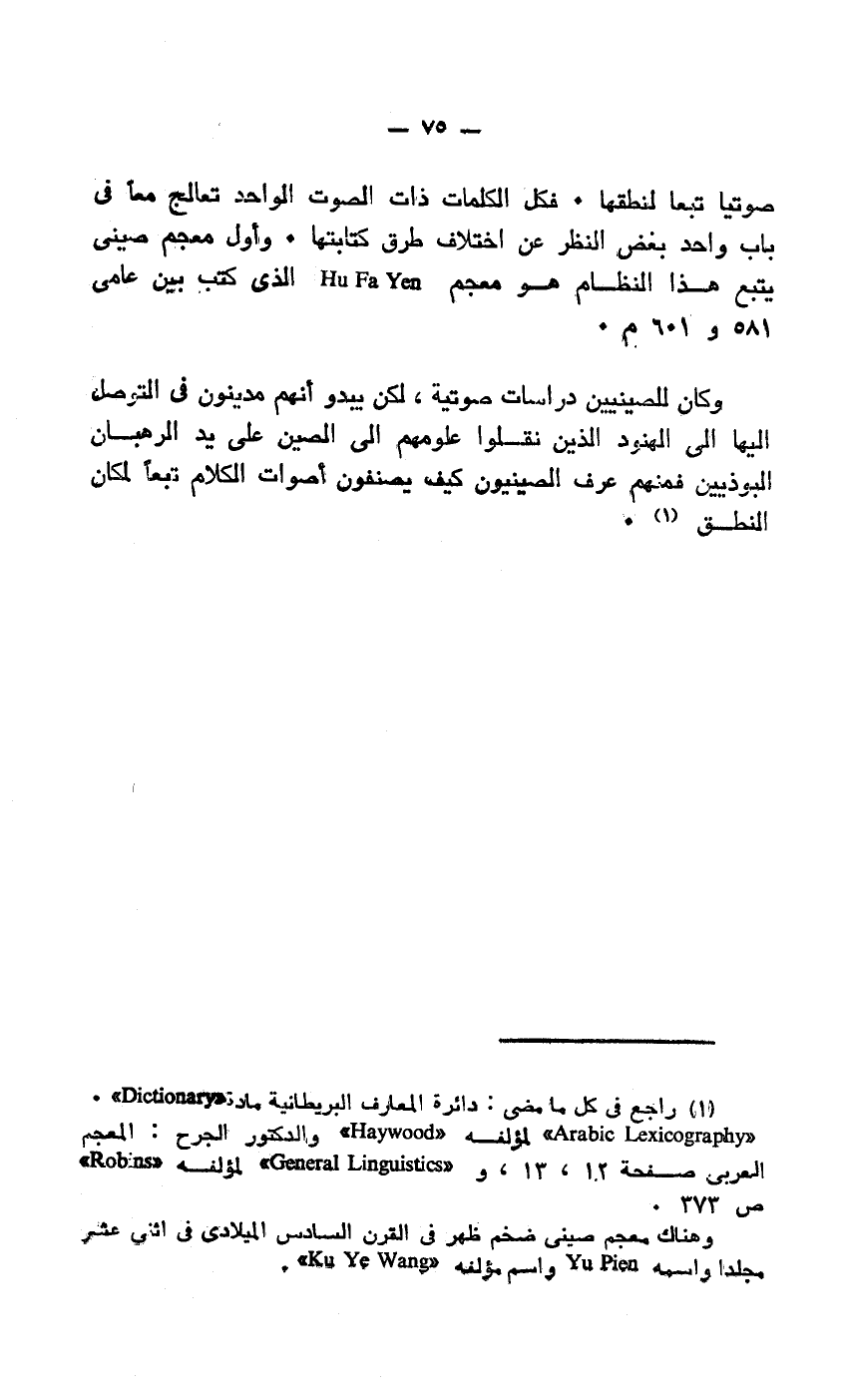 Arabic Lexicography" لمؤلفه Haywood" والدكتور الجرح: المعجم العربي صفحة 12، 13، و "General Linguistics" لمؤلفه "Robins " ص 373.