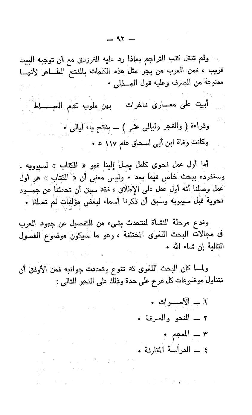 وندع مرحلة النشأة لنتحدث بشيء من التفصيل عن جهود العرب في مجالات البحث اللغوي المختلفة، وهو ما سيكون موضوع الفصول التالية إن شاء الله.