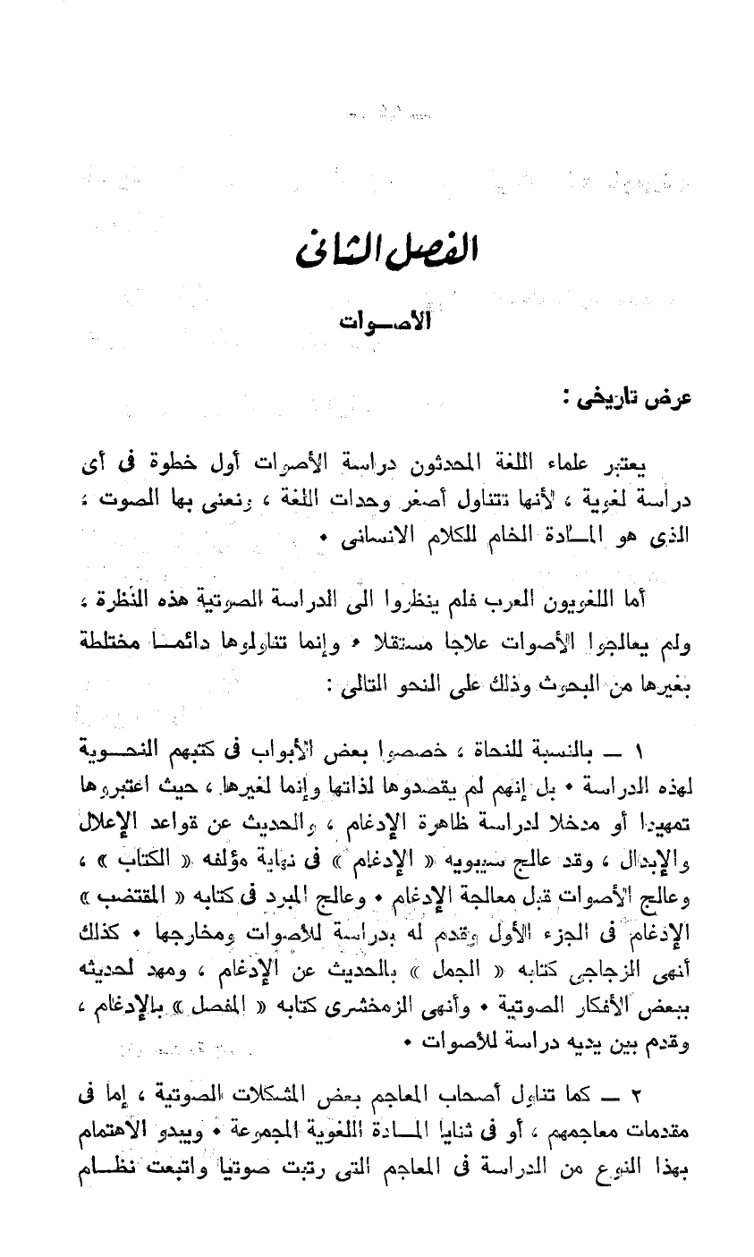 أما اللغويون العرب فلم ينظروا إلى الدراسة الصوتية هذه النظرة، ولم يعالجوا الأصوات علاجًا مستقلًّا، وإنما تناولوها دائمًا مختلطة بغيرها من البحوث وذلك على النحو التالي: