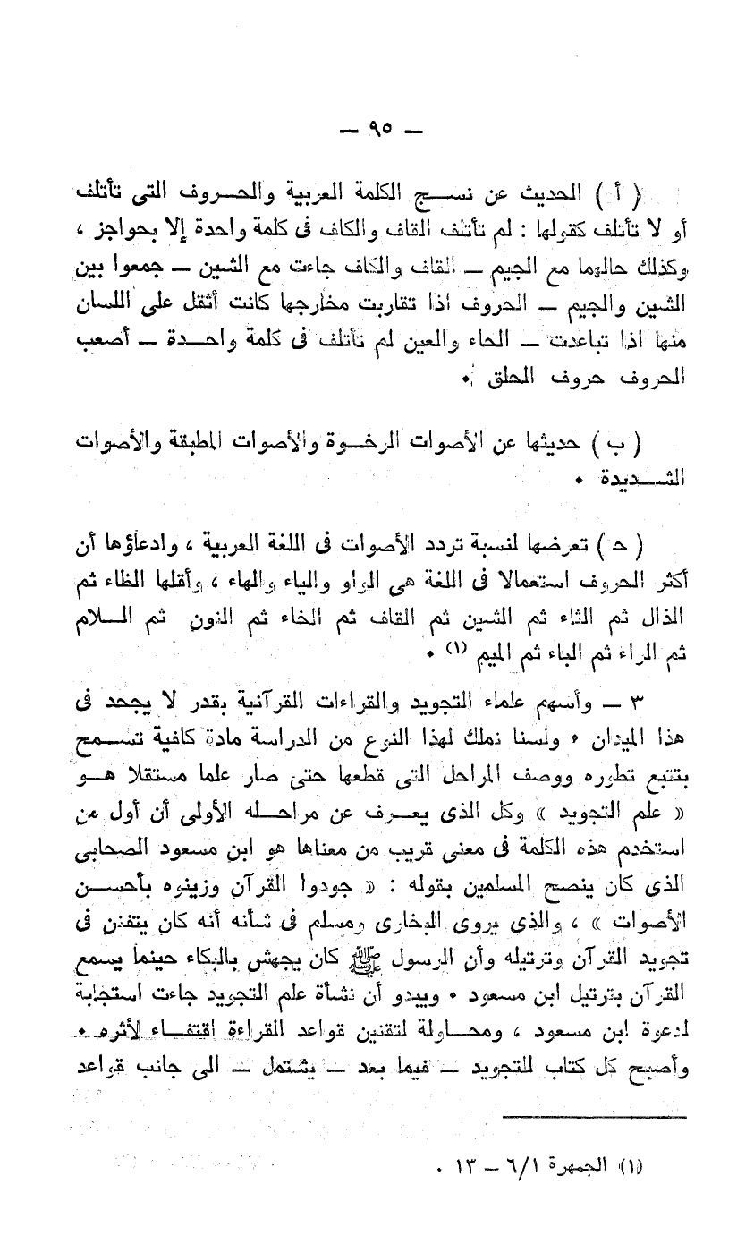 حـ- تعرضها لنسبة تردد الأصوات في اللغة العربية، وادعاؤها أن أكثر الحروف استعمالًا في اللغة هي الواو والياء والهاء، وأقلها الظاء ثم الذال ثم الثاء ثم الشين ثم القاف ثم الخاء ثم النون ثم اللام ثم الراء ثم الباء ثم الميم1.