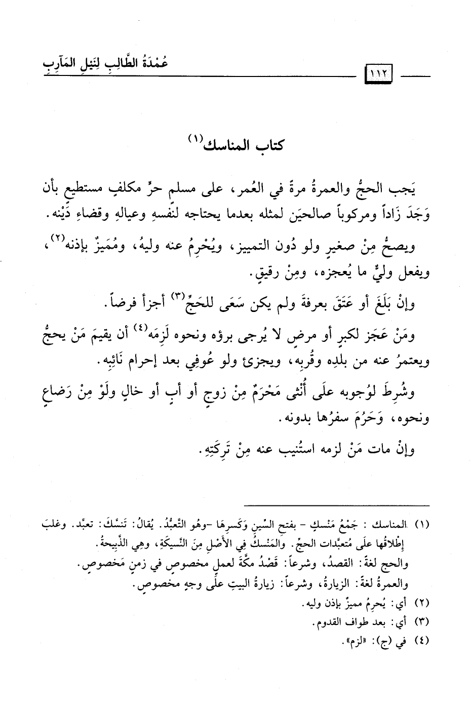 (¬1) المناسك: جَمْعُ مَنْسكِ -بفتحِ السِّينِ وَكَسرِهَا- وهُو التَعبُّدُ. يُقالُ: تَنسَّكَ: تعبَّد. وغلبَ إِطْلاقُها علَى مُتعبَّدات الحجِّ. والمَنْسكُ فِي الأَصْلِ مِنَ النسيكَةِ، وهِي الذَّبِيحةُ.