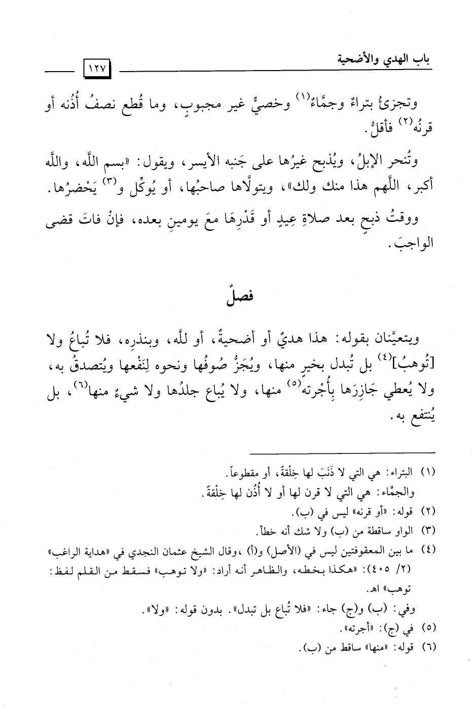 (¬4) ما بين المعقوفتين ليس في (الأصل) و (أ)، وقال الشيخ عثمان النجدي في "هداية الراغب" (2/ 405): "هكذا بخطه، والظاهر أنه أراد: "ولا توهب" فسقط من القلم لفظ: توهب" اهـ.