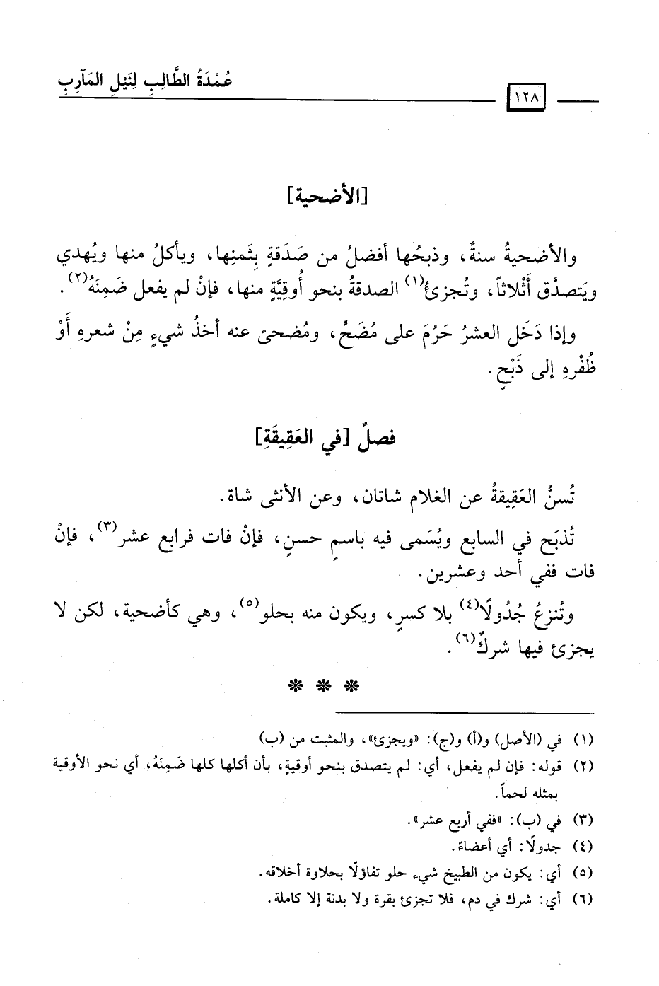 تُسنُّ العَقِيقةُ عن الغلام شاتان، وعن الأنثى شاة.