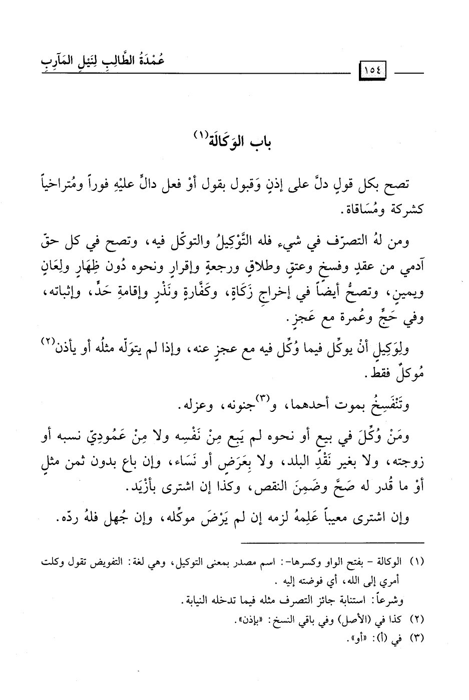 (¬1) الوكالة -بفتح الواو وكسرها-: اسم مصدر بمعنى التوكيل، وهي لغة: التفويض تقول وكلت أمري إلى الله، أي فوضته إليه.
