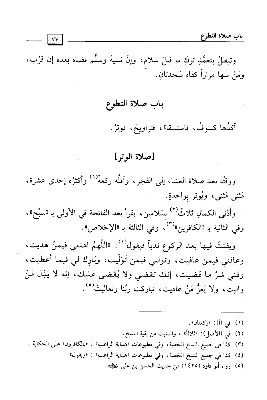 (¬5) رواه أبو داود (1425) من حديث الحسن بن علي - رضي الله عنها -.