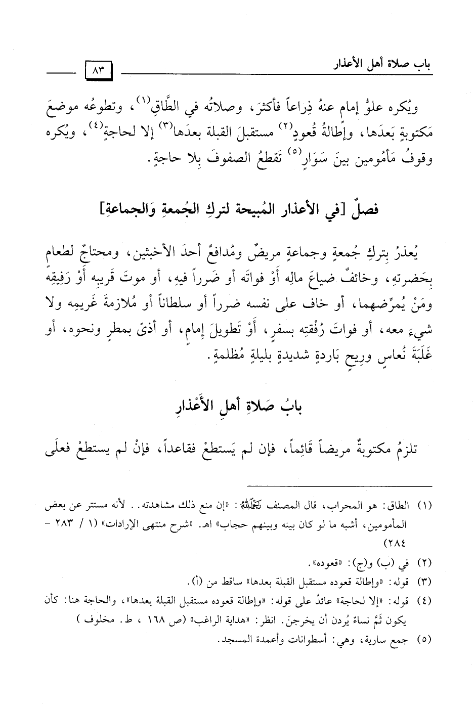 بابُ صَلاةٍ أهلِ الأَعْذارِ