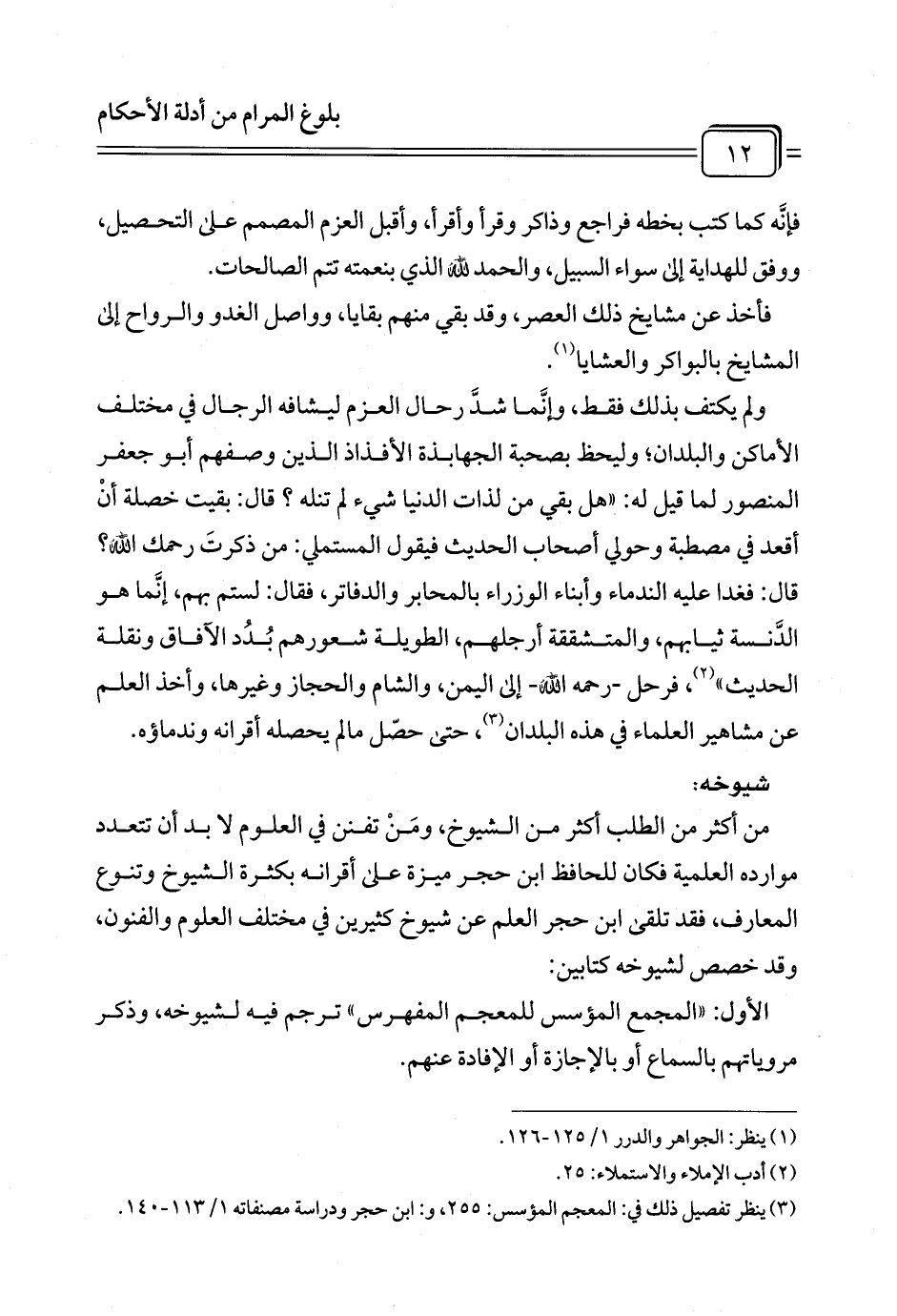 ولم يكتف بذلك فقط، وإنَّما شدَّ رحال العزم ليشافه الرجال في مختلف الأماكن والبلدان؛ وليحظ بصحبة الجهابذة الأفذاذ الذين وصفهم أبو جعفر المنصور لما قيل له: «هل بقي من لذات الدنيا شيء لم تنله؟ قال: بقيت خصلة أنْ أقعد في مصطبة وحولي أصحاب الحديث فيقول المستملي: من ذكرتَ رحمك الله؟ قال: فغدا عليه الندماء وأبناء الوزراء بالمحابر والدفاتر، فقال: لستم بهم، إنَّما هو الدَّنسة ثيابهم، والمتشققة أرجلهم، الطويلة شعورهم بُدُد الآفاق ونقلة الحديث» (¬2)، فرحل -رحمه الله- إلى اليمن، والشام والحجاز وغيرها، وأخذ العلم عن مشاهير العلماء في هذه البلدان (¬3)، حتى حصّل مالم يحصله أقرانه وندماؤه.